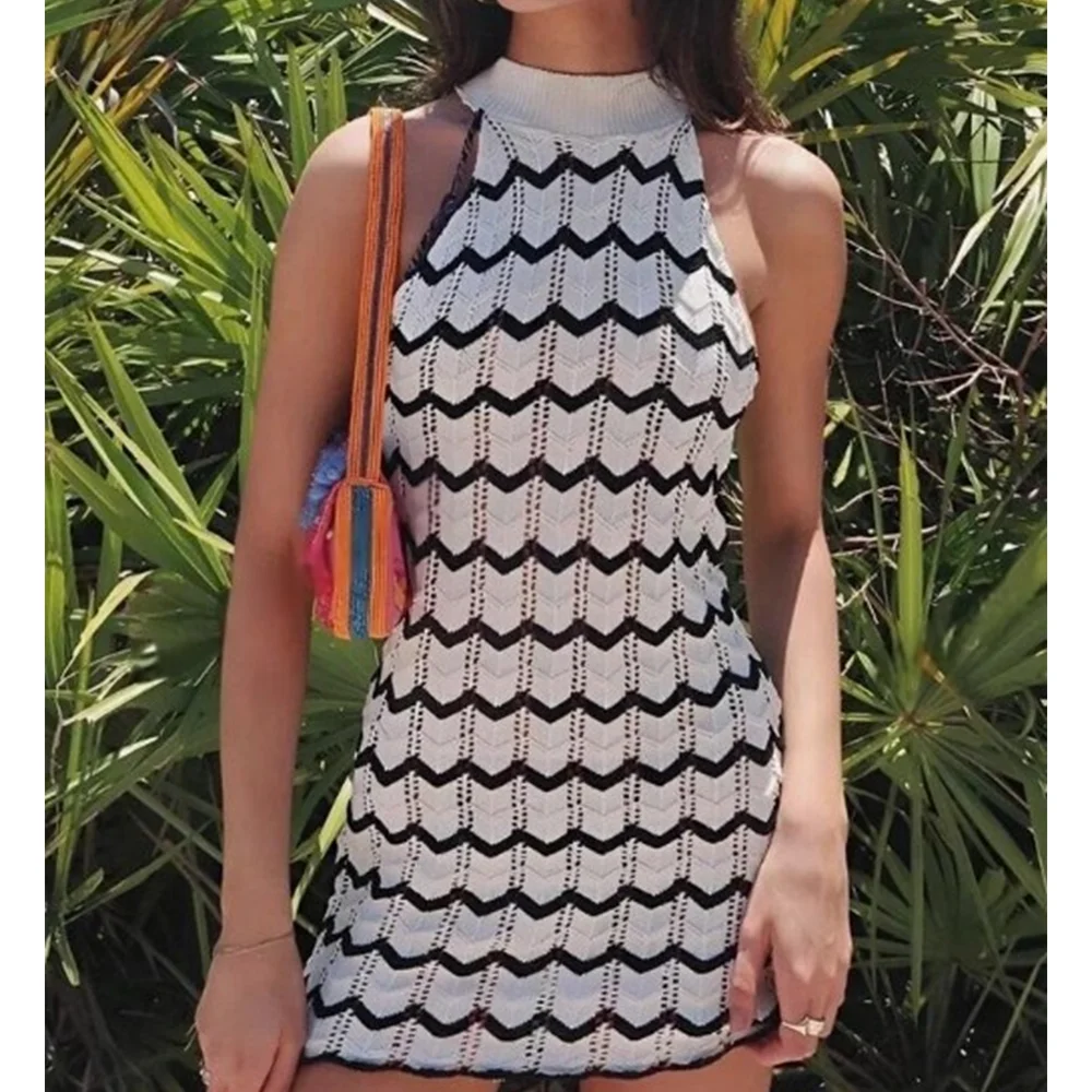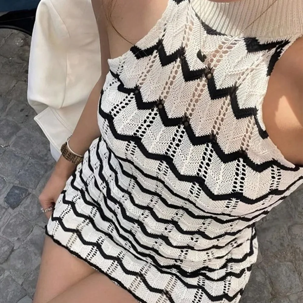 Elegant Summer Bodycon Mini Dress for Women A-Line Striped Knitted 0-Neck Sleeveless Empire Waistline Sexy Casual Club Style OEM