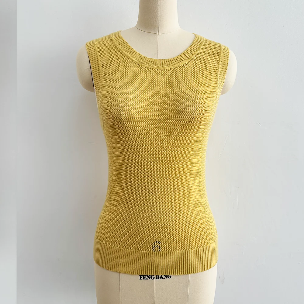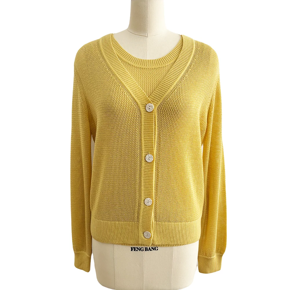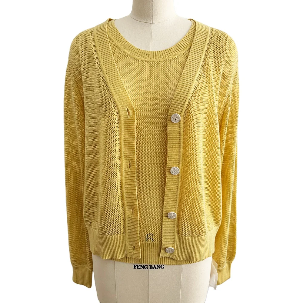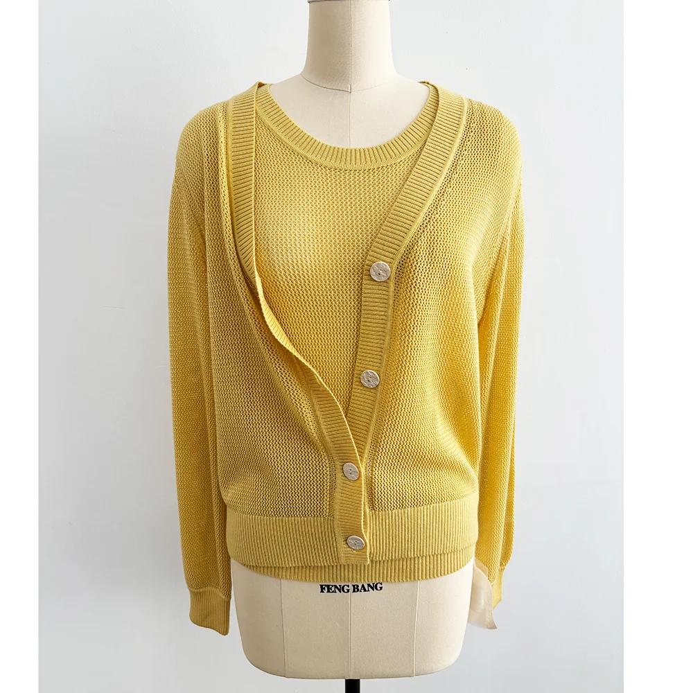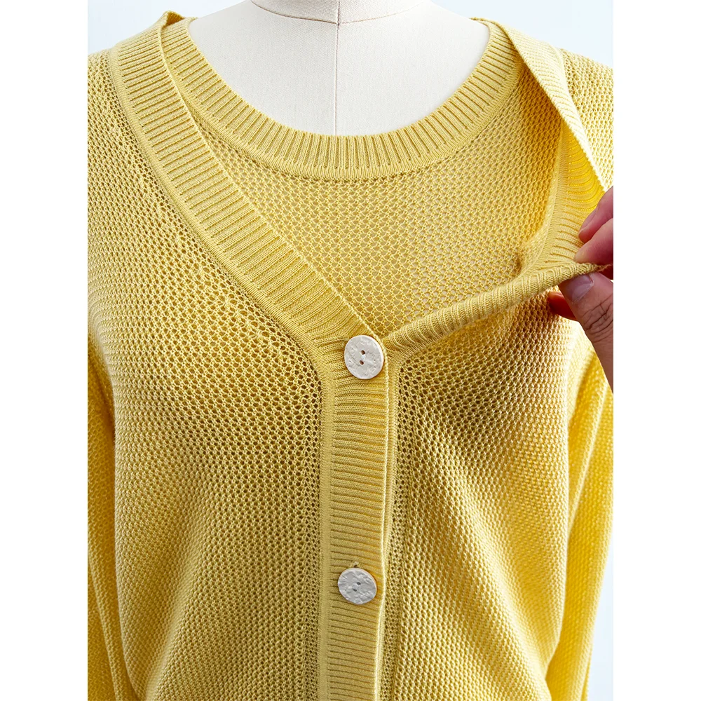 2025 New Women's Knit Top Sets Hollow Out Design 2 Piece Set Solid Color Spring Ladies Knit Pullover Vest Women Cardigan Sweater