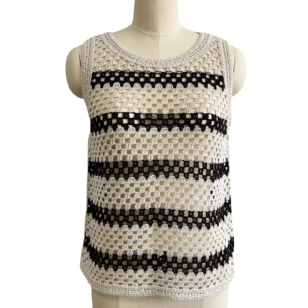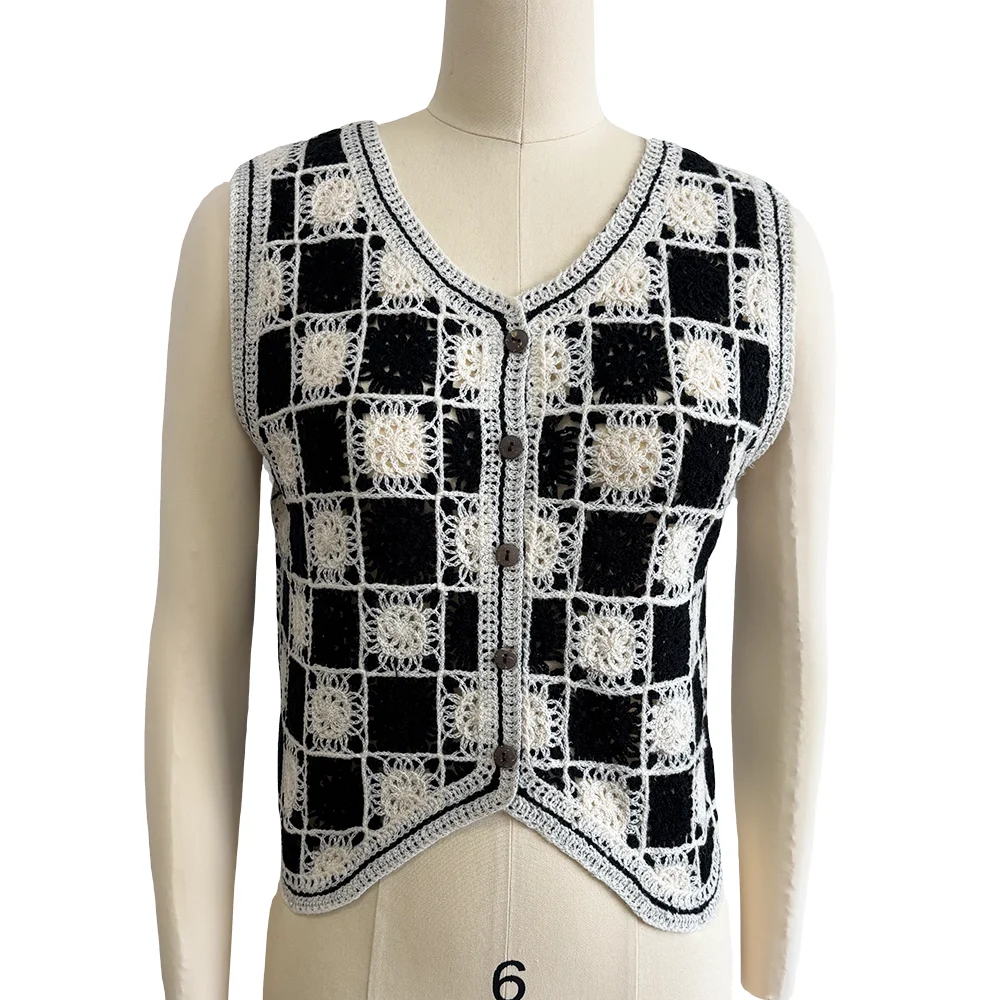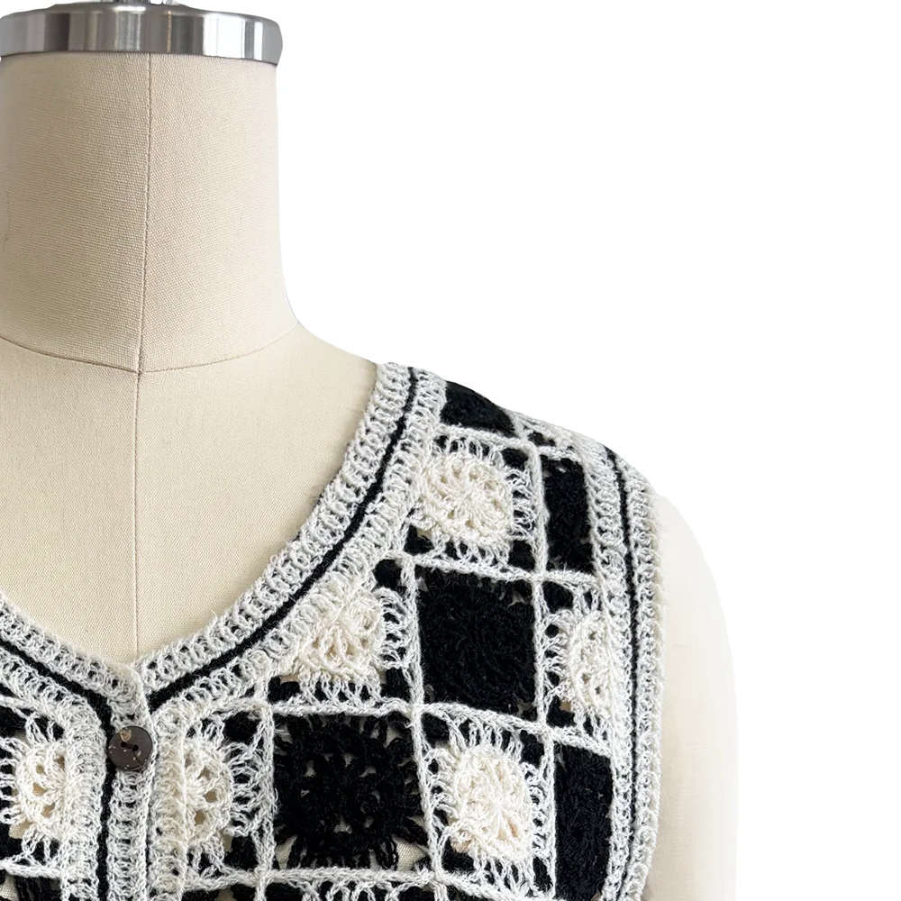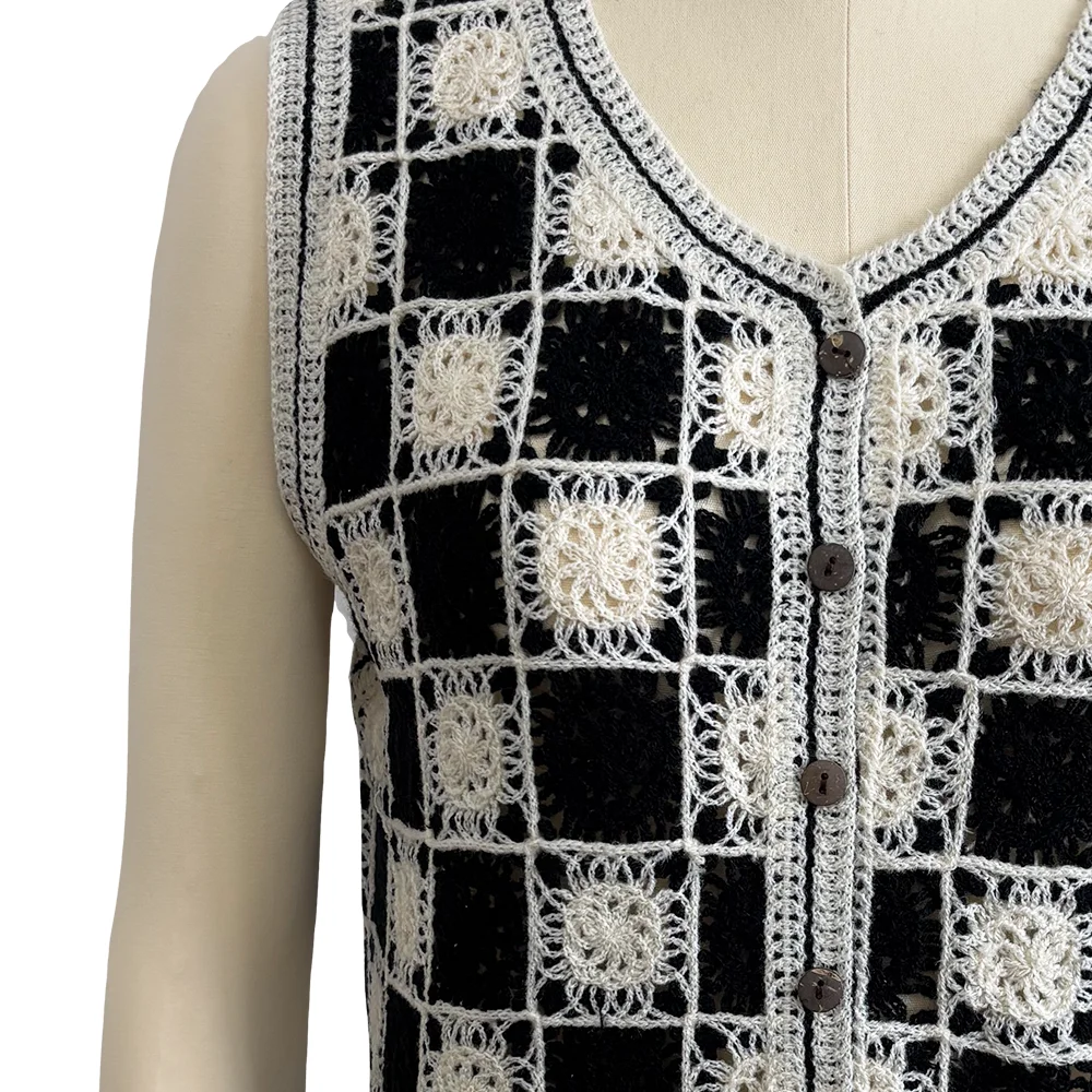 Customized Women's Knitwear Crochet Vest Floral Embroidery Button Cardigan Sleeveless Design for Spring Breathable Casual Short