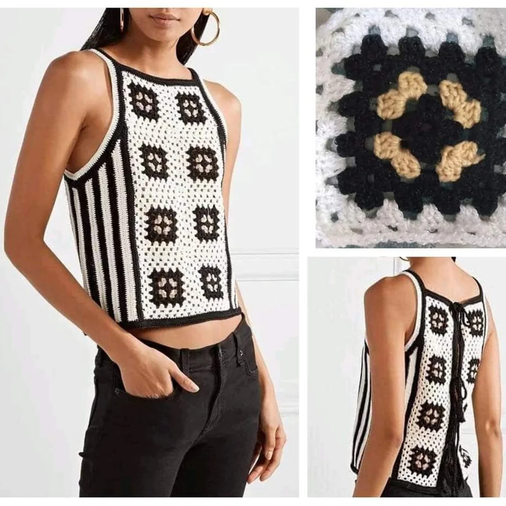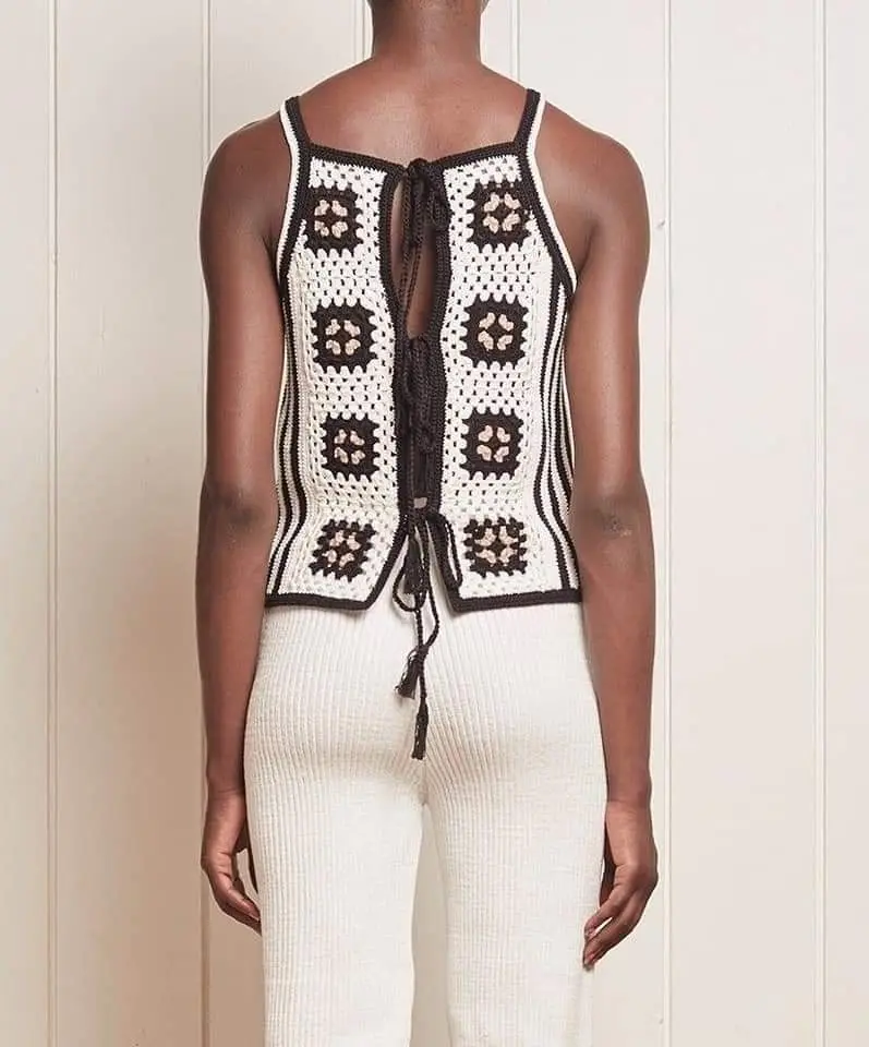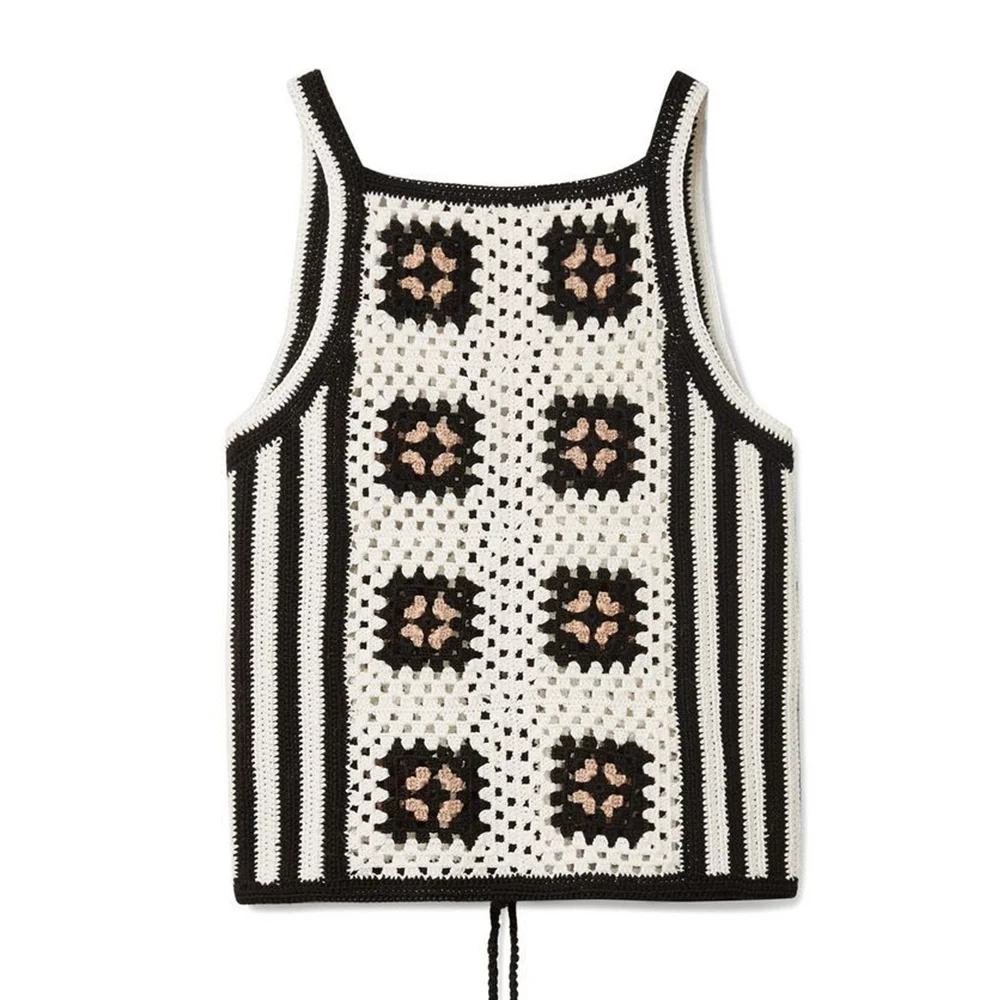 Custom OEM/ODM Summer Beach Knitted Cardigan Vest Women Hollow Cropped Tank Top Women Crochet Chrochet Sweater Knit Vest Women