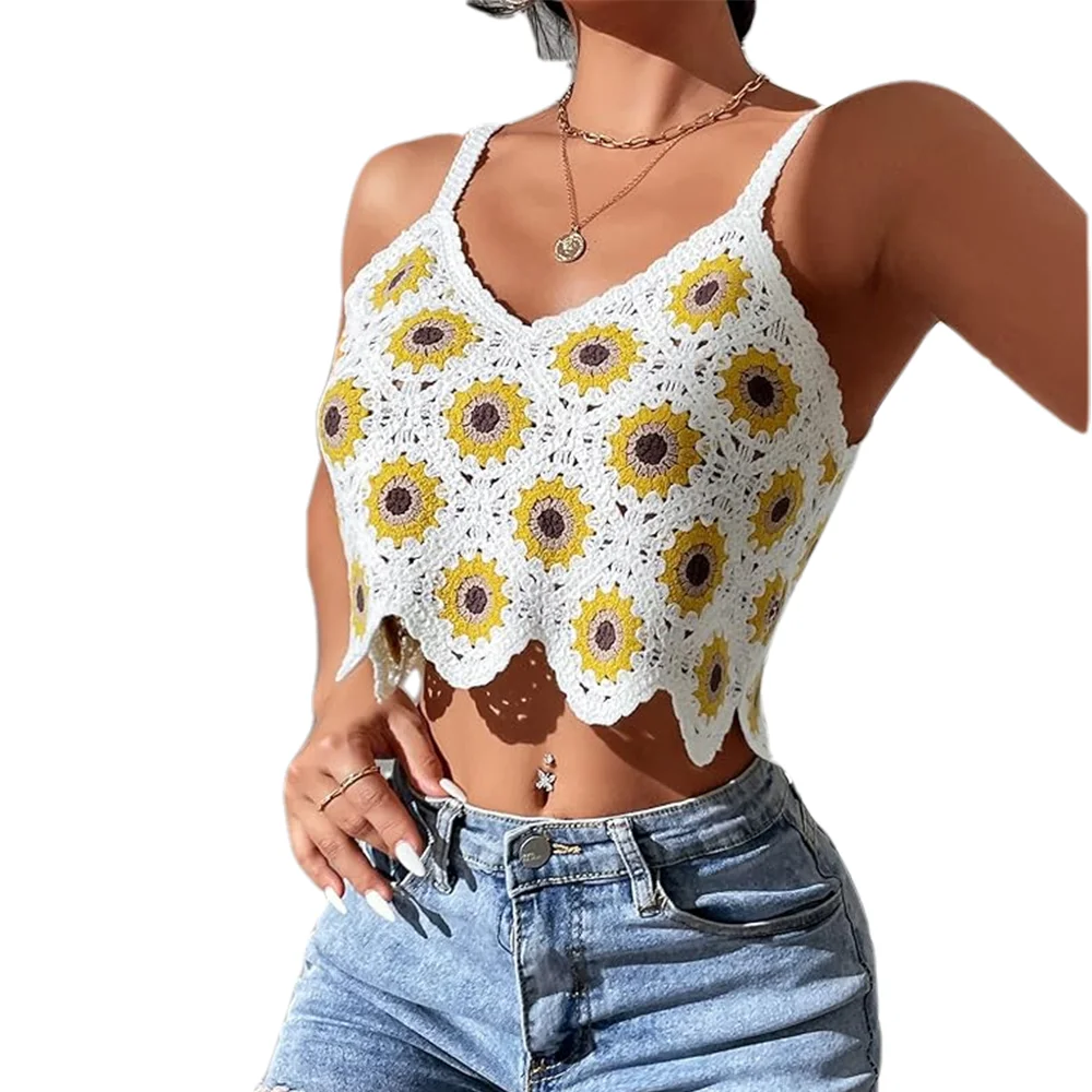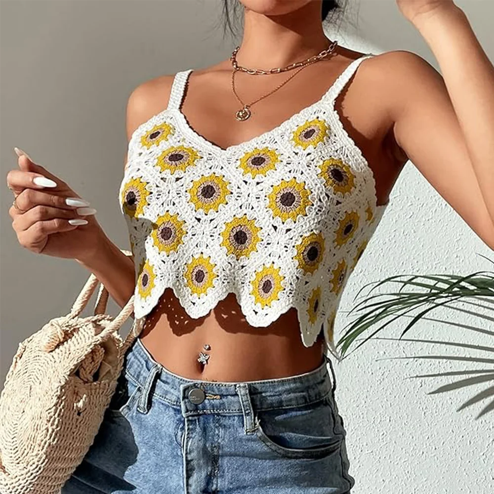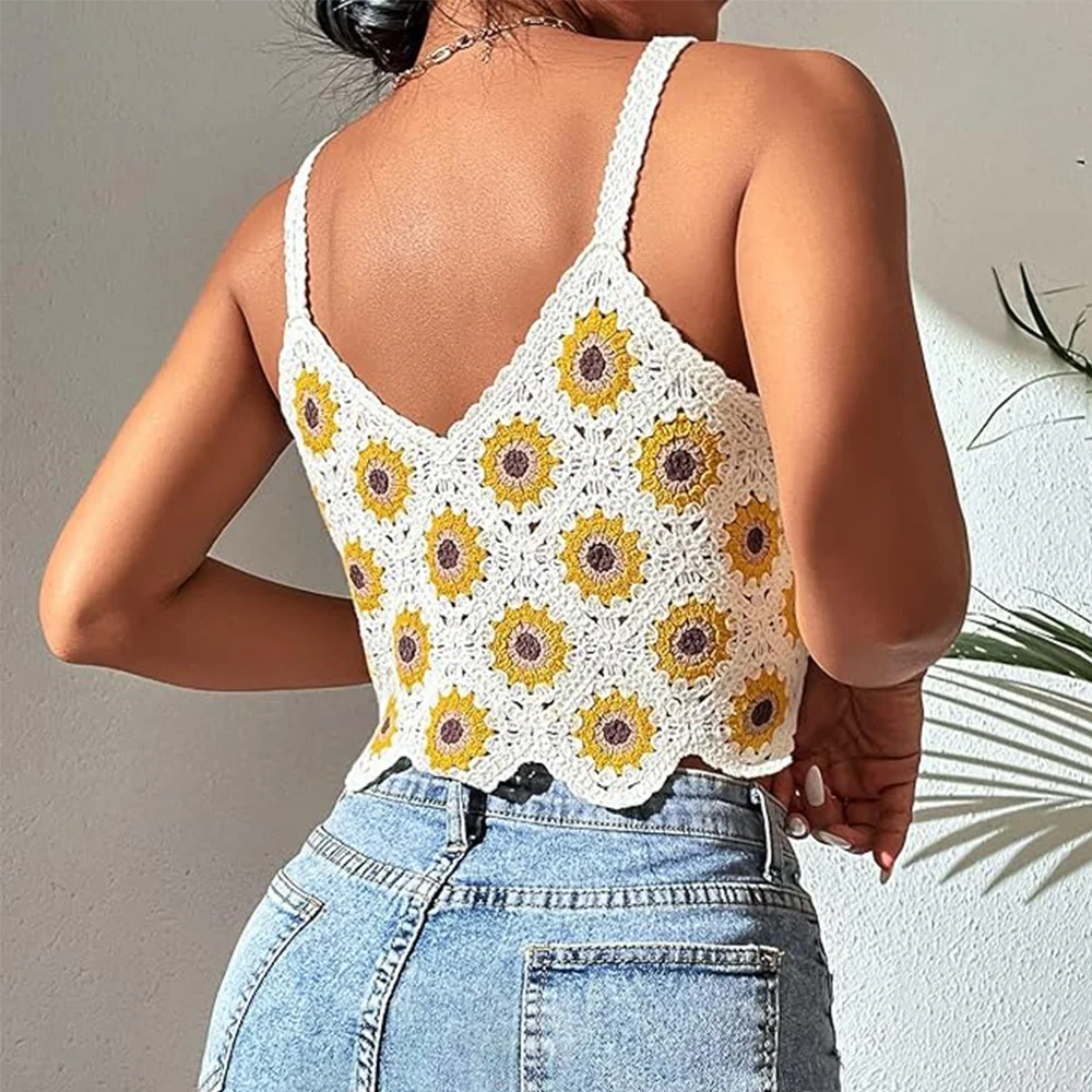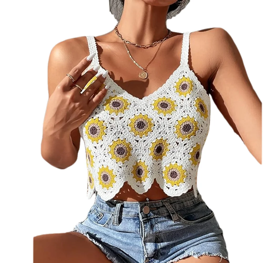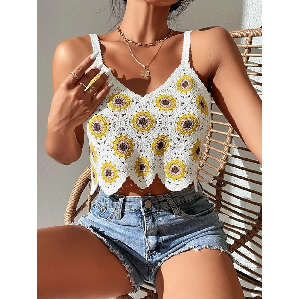Hot Beach Crochet Halter Top Sleeveless Knitted Sweater Vest for Women Knitwear Crochet Clothes Summer Knit Women's Bikini Vest