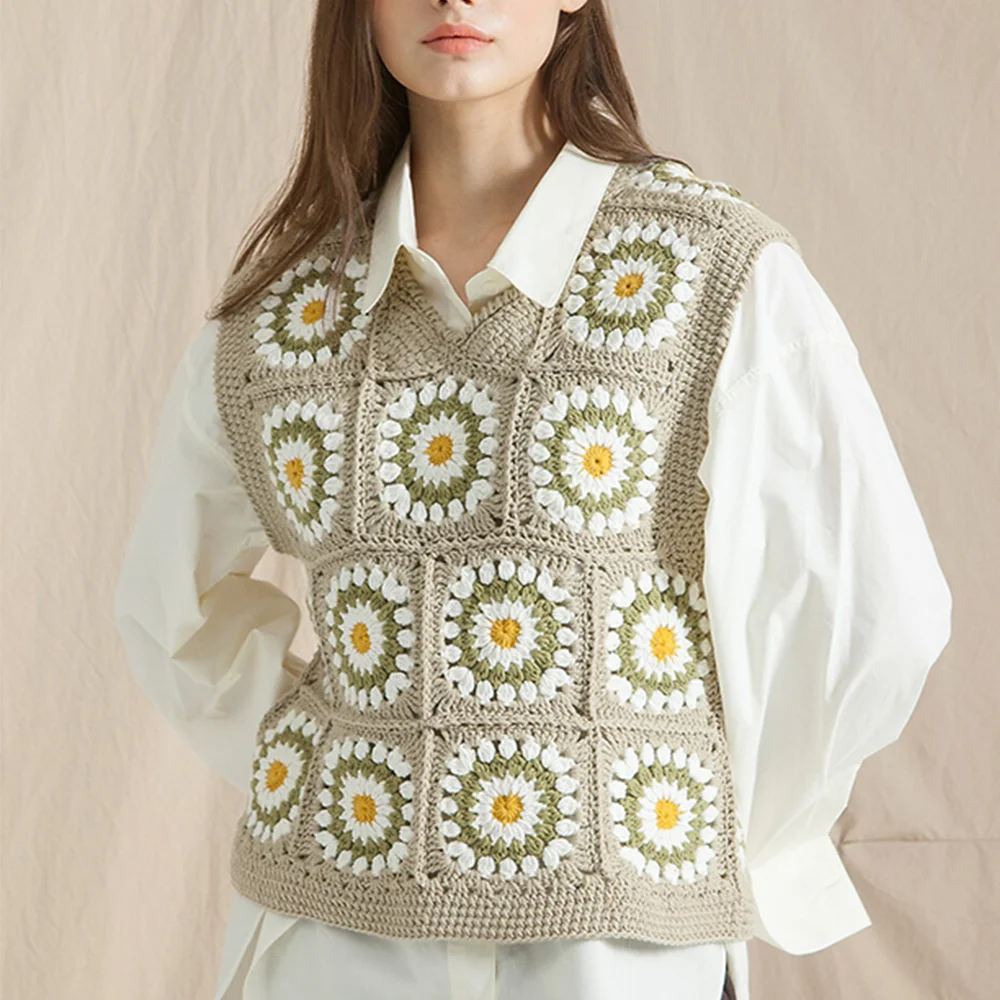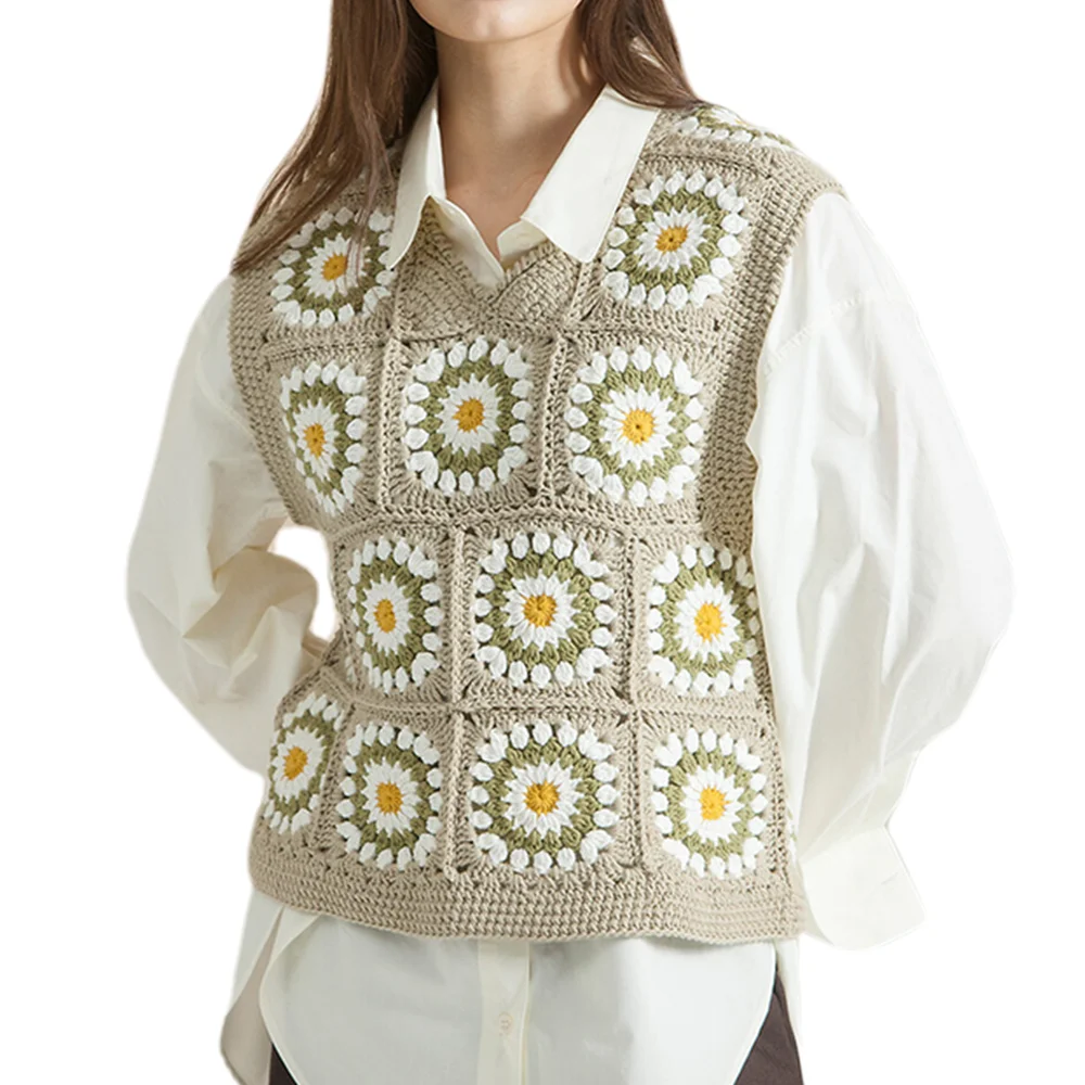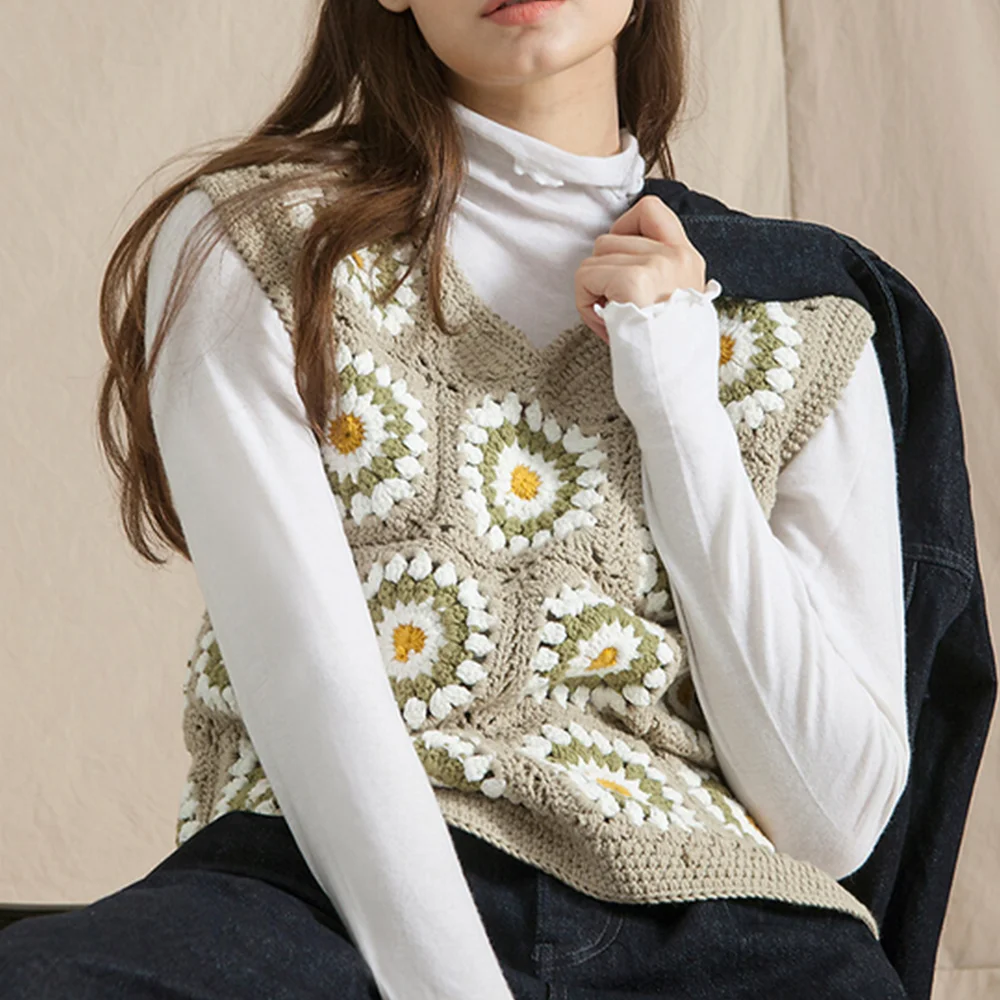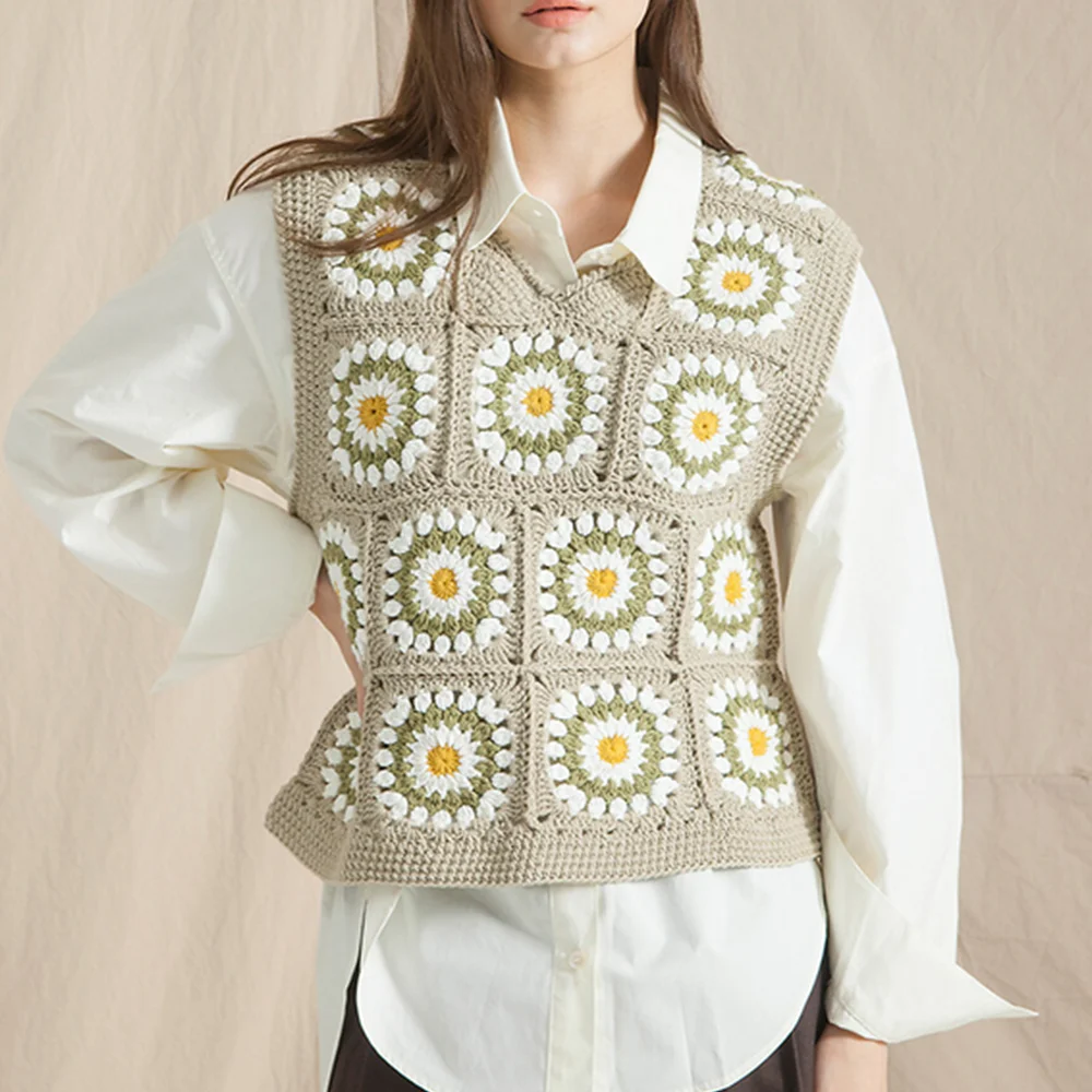 2025 New Sweet Gentle Knitted Pullover Women Crop Top Vest V-neck Tube Top Sleeveless Sweater Crochet Knitted Vests for Ladies