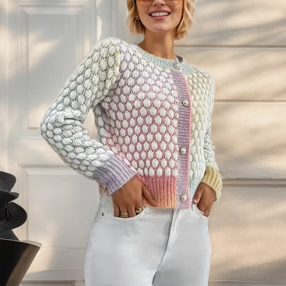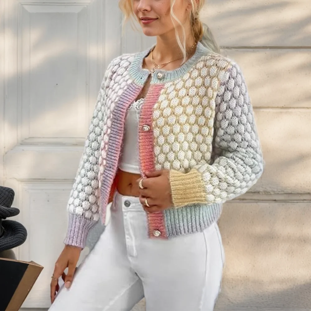 Hot Selling Winter Cardigan Jacket Rainbow Color Ladies Sweater KnitLong Sleeve Crop Top Women's Cardigan Sweater With Buttons