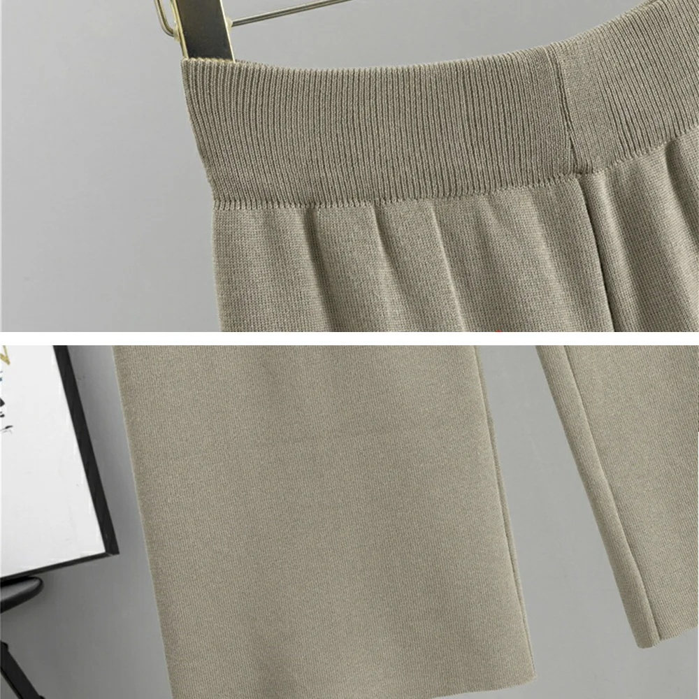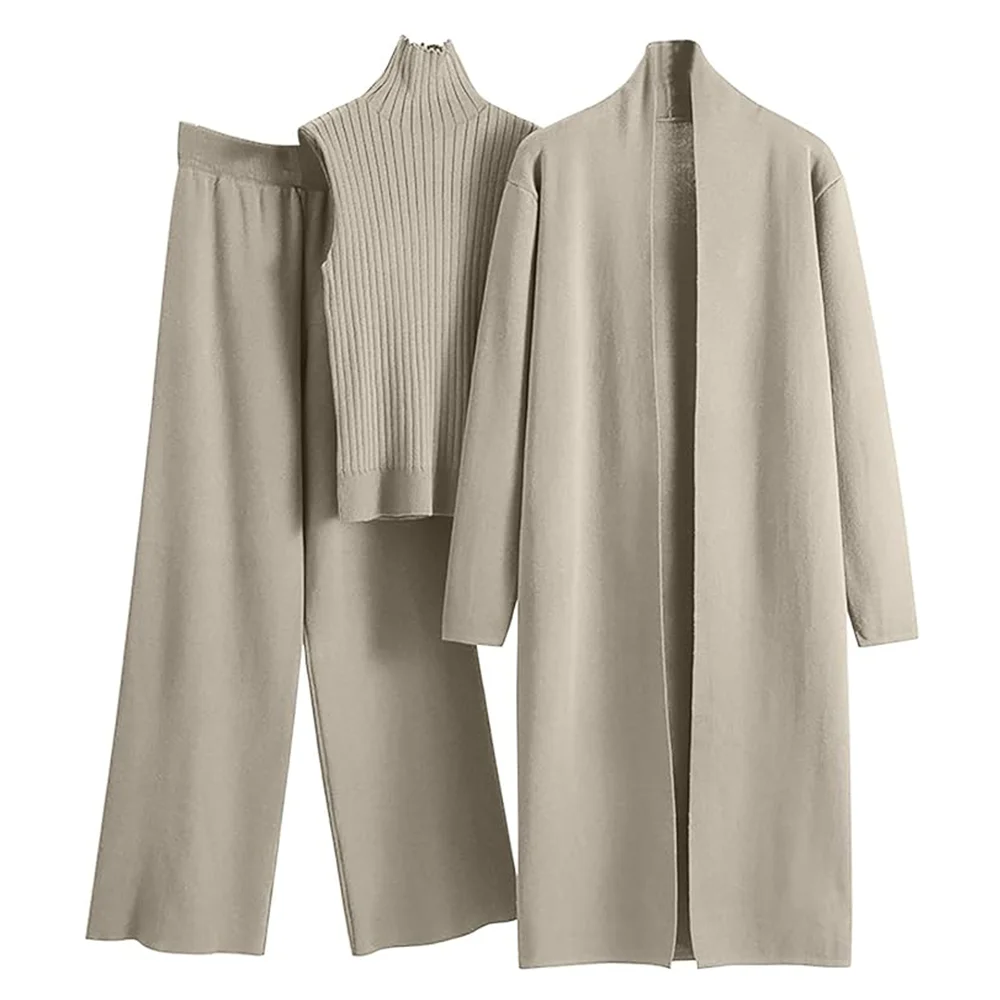 In Stock Autumn Lazy Loose Knitted Suits Women Long Cardigan Sweater+Turtleneck Knit Vest Top+Wide-Leg Pants 3 Piece Set Women
