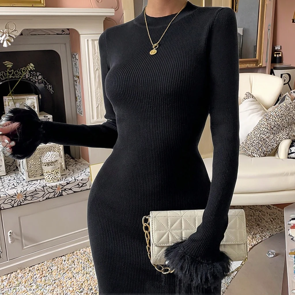 High Quality Women's Sweater Skirts Manufacturer Custom Logo OEM Casual Pullover Long Winter Lounge Sweater Dress Women Clothing