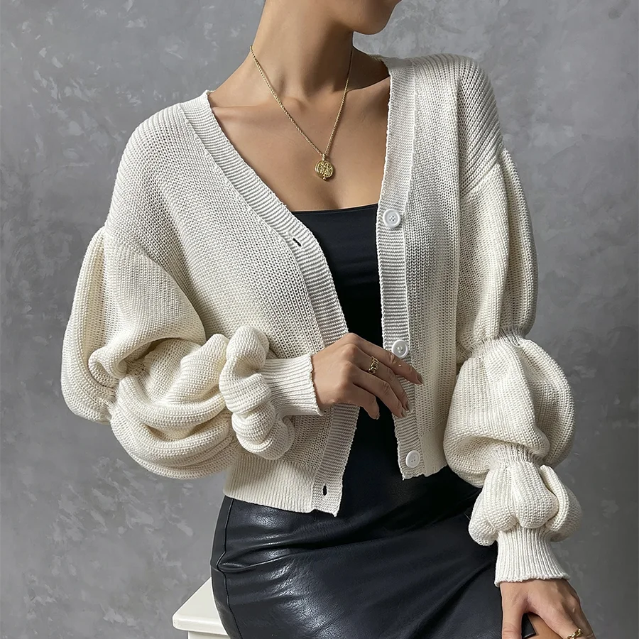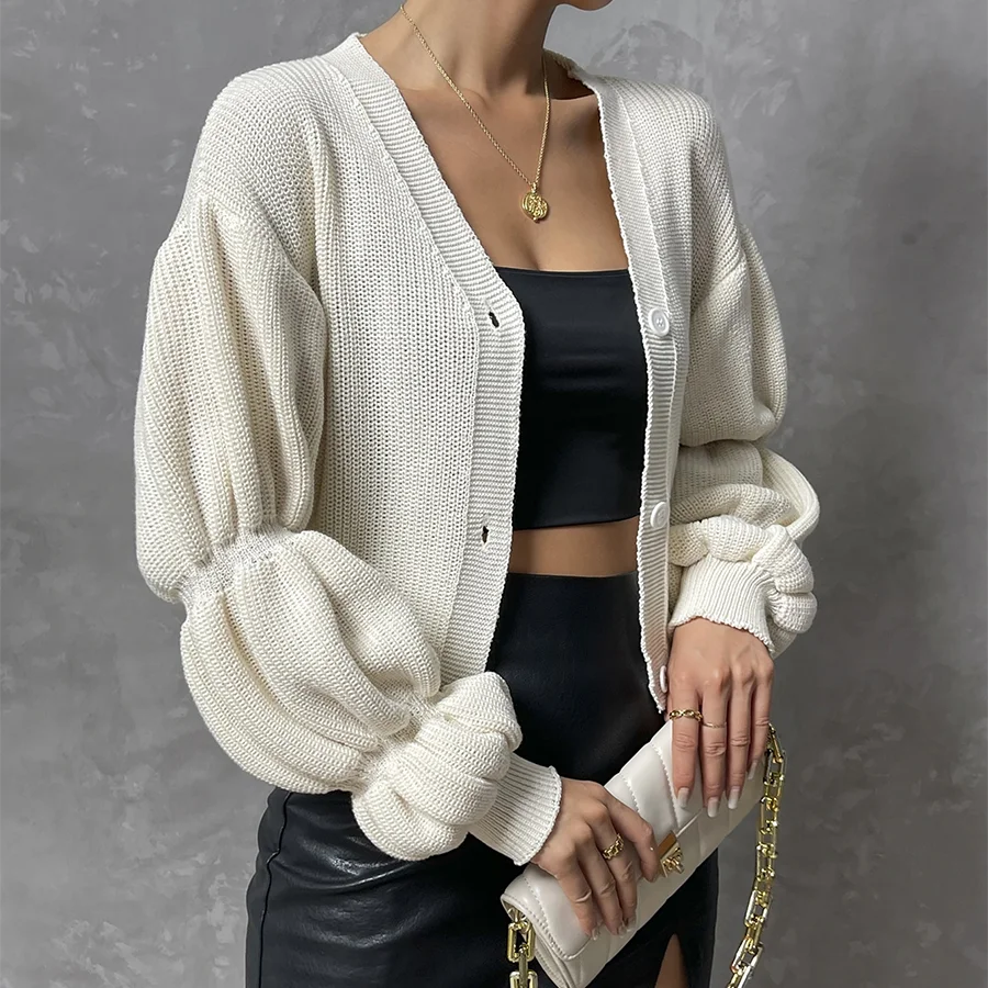 Autumn Women's Knitted Cardigan Jacket New Casual Sweater Coat Elegant V Neck Long Sleeve Button Knitted Women's Sweater