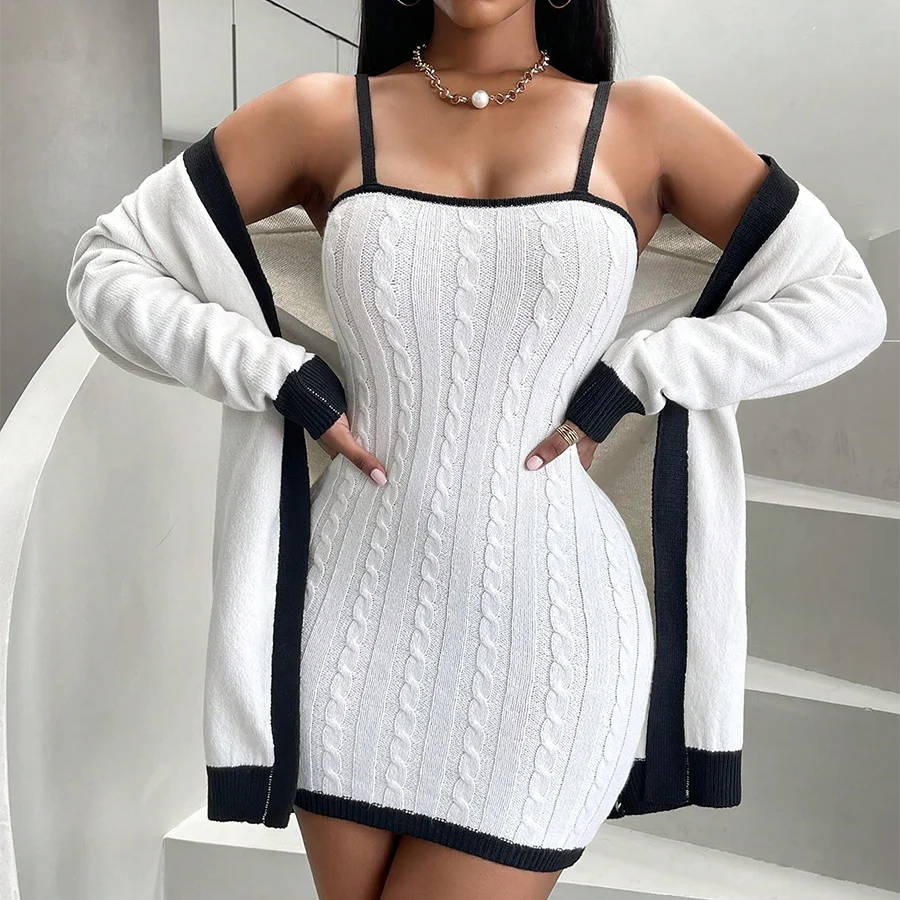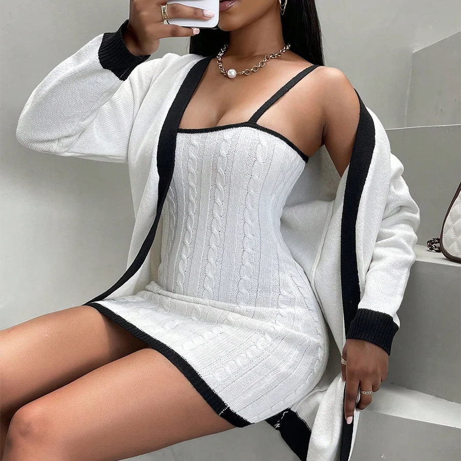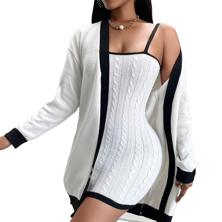 Custom Knitted Women's Sweater Set Fashion Streetwear Long Sleeve Sweaters Cropped Dresses Knit Ladies Sweaters 2 Piece Set