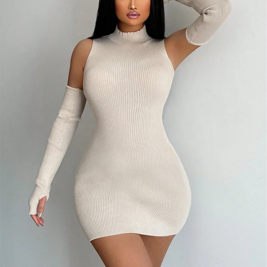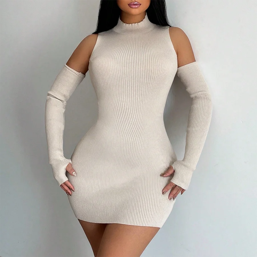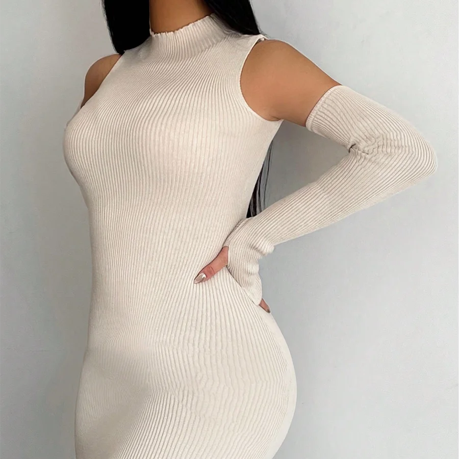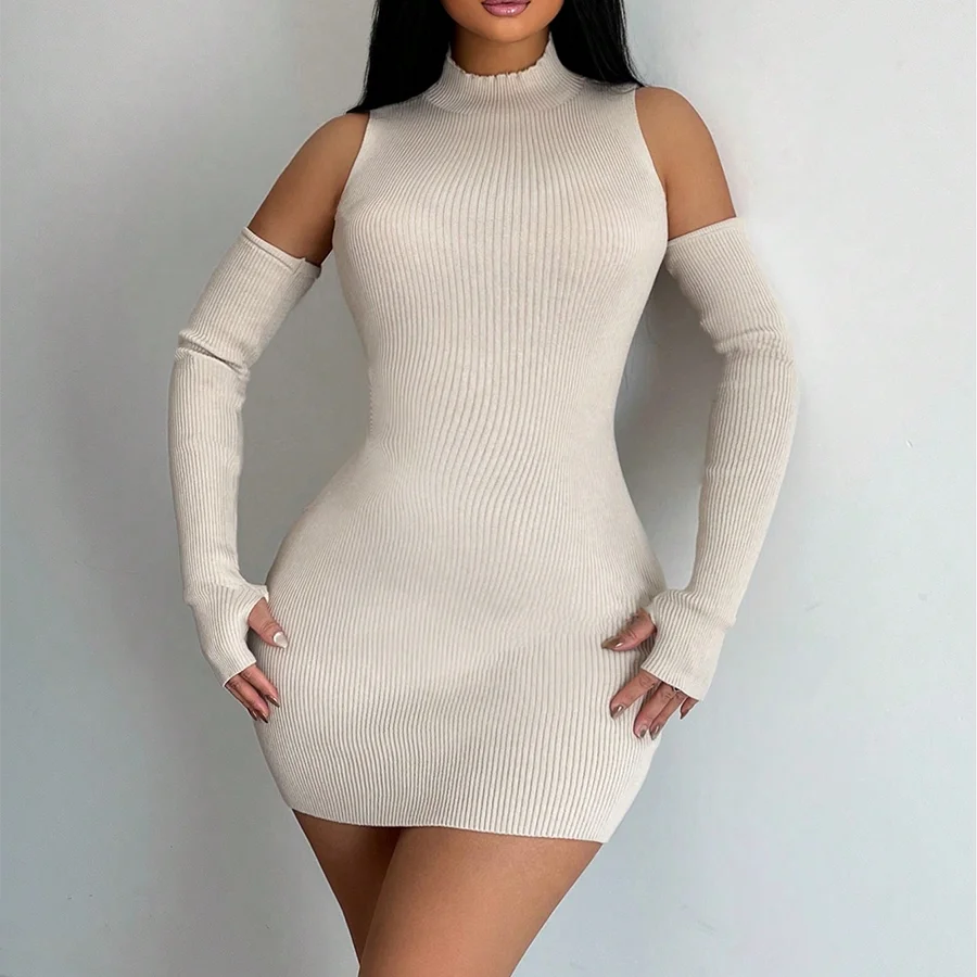 Custom Wholesale Women's Knitted Sweater Dress High Collar Ladies Long Sleeve Winter Casual Dresses Women Knitted Sweater Dress