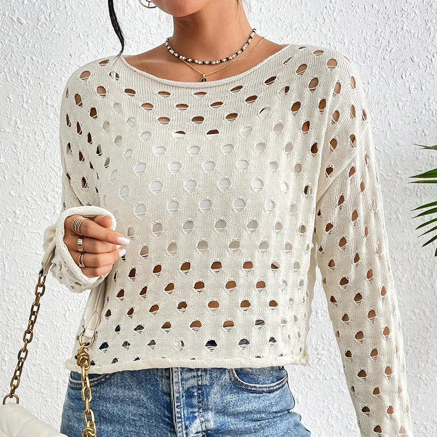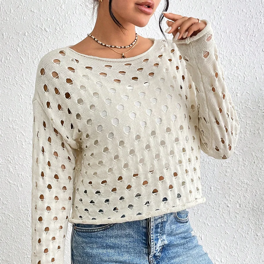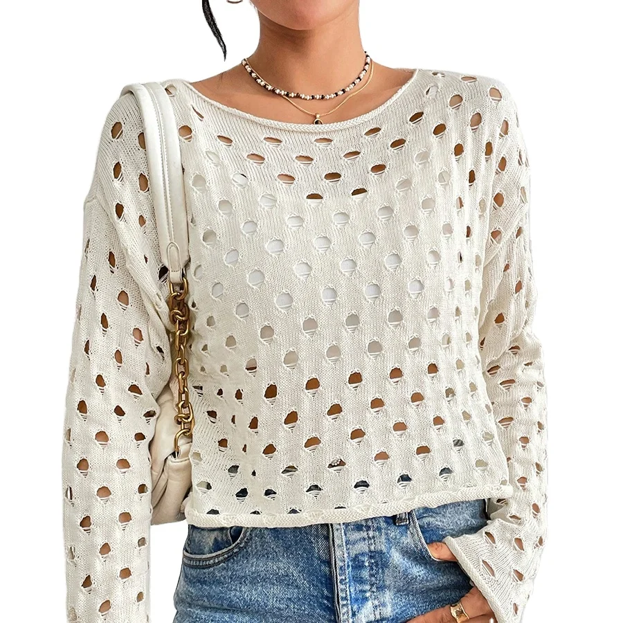 Custom Fashion Womens Sweater Long Sleeve Crewneck Casual Loose Fit Soft Knit Jumper Sweater Casual Pullover Sweater for Women