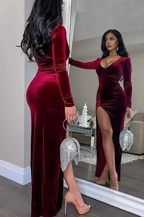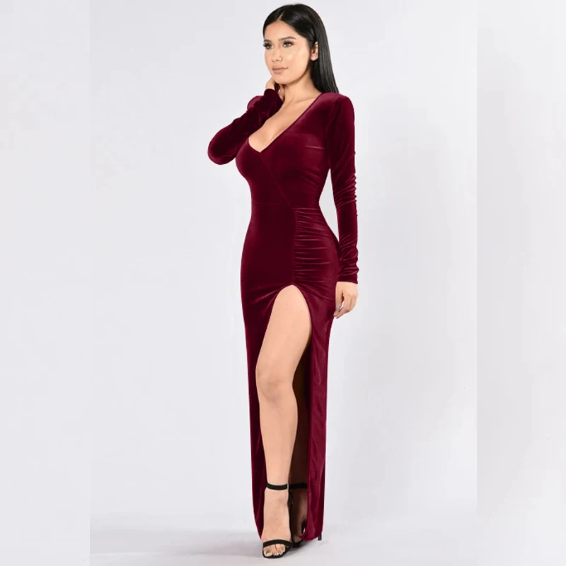 New Arrivals European and American Style High Split Long Sleeve Bodycon Dress Club Dress Women
