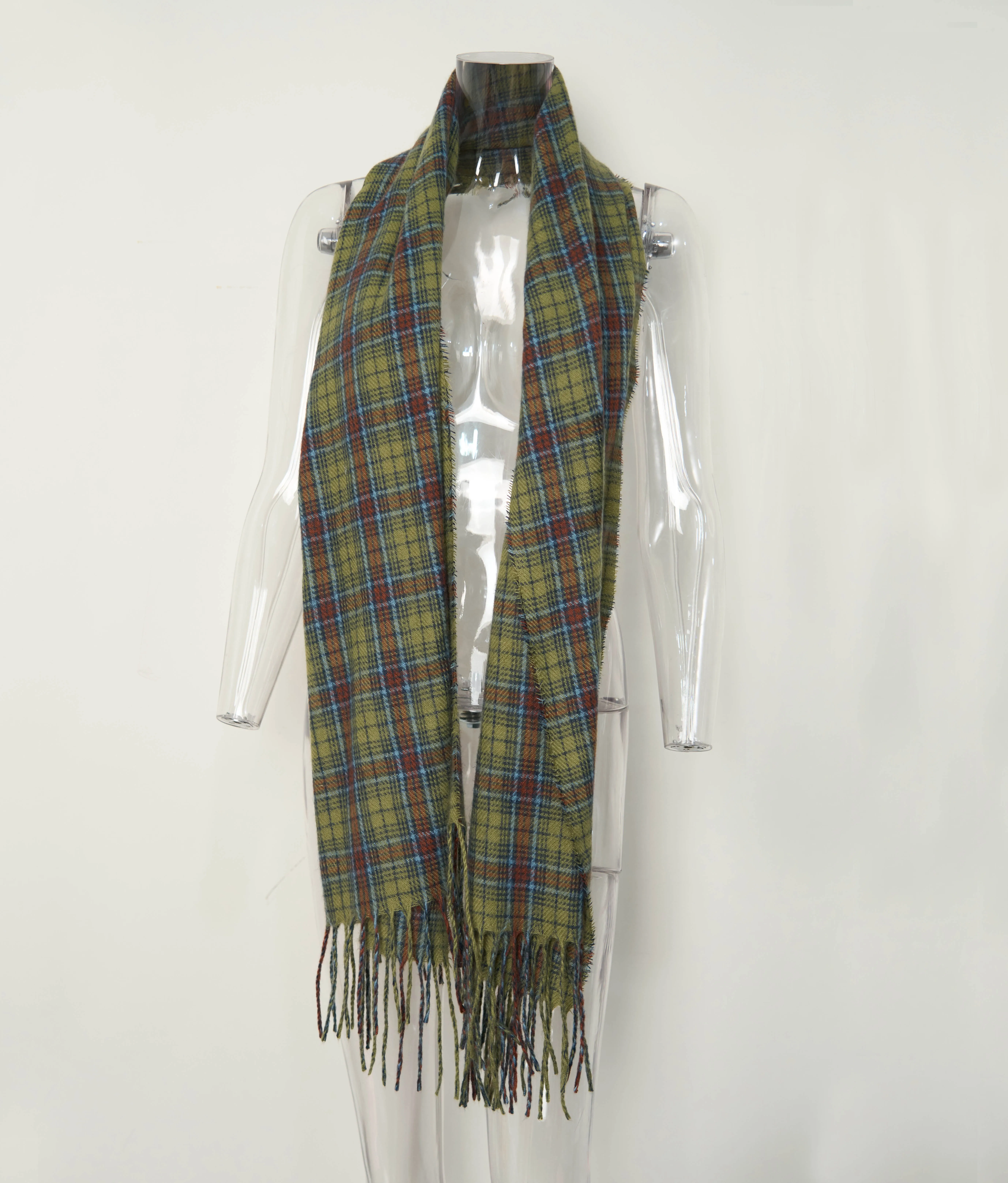 New TOB SCARVES Green Retro Checkered Scarf Versatile, Personalized and High-end Scarf