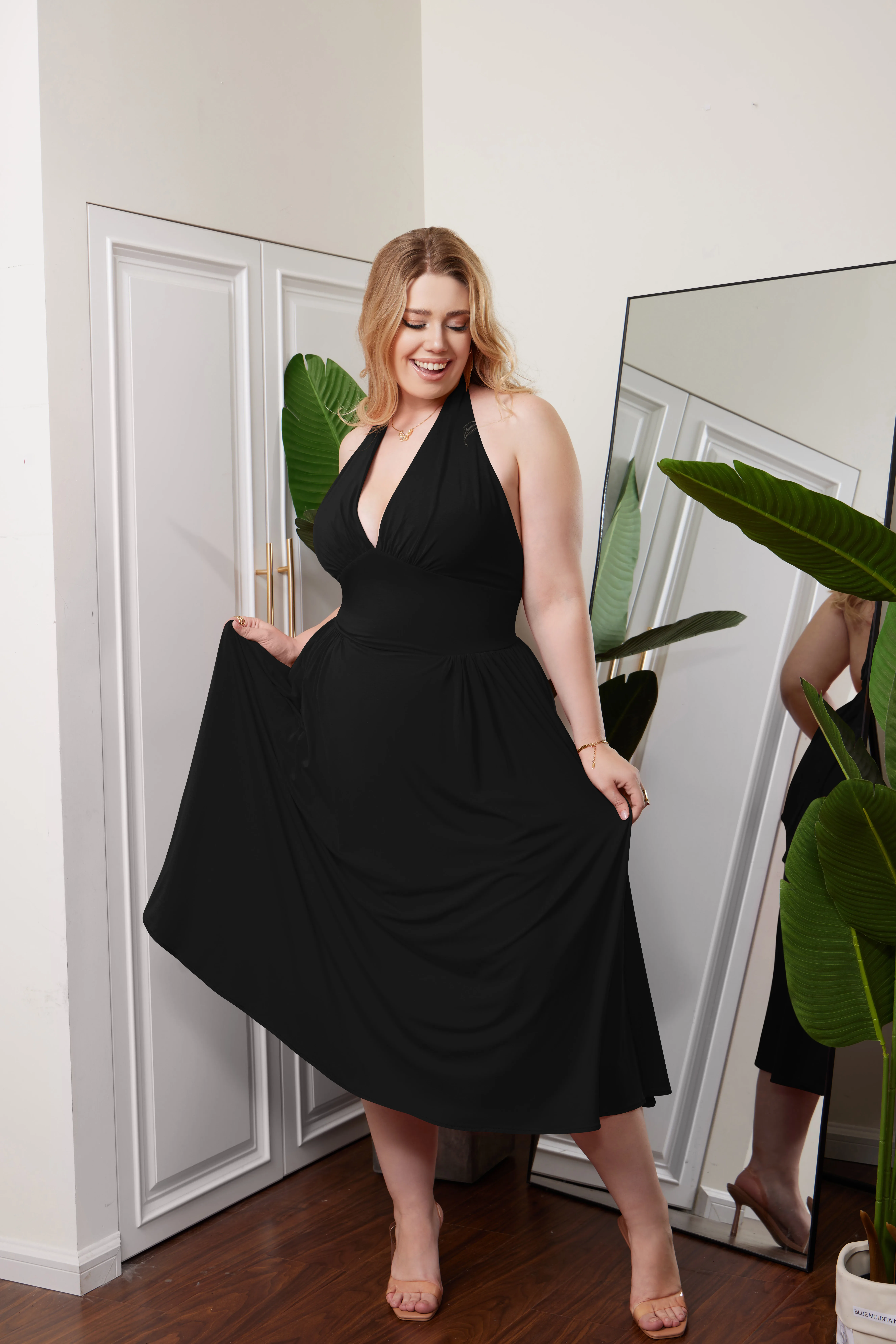 New Arrive Halter V Neck Backless and Back Tie Elegant Party Dress for Ladies Evening Dress