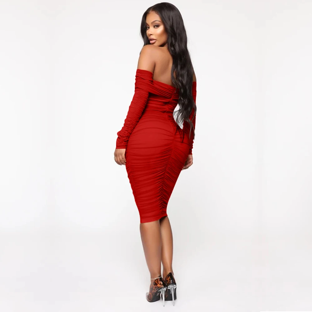 ZYHT 73849 European Wholesale Fashion Casual One Shoulder Ruched Maxi Dress Side Slit Pleated Long Sleeve Dresses for Women