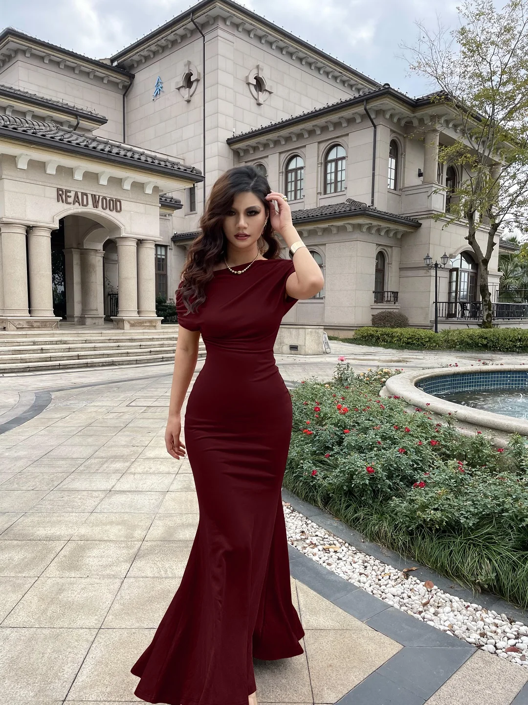 New Arrival Wholesale One Shoulder Ruched High Waist Bodycon Backless Long Elegant Dresses for Lady