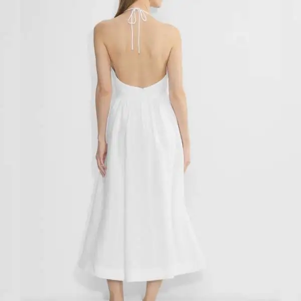White Halter - Neck Midi Dress with Open Back,Chic and Breezy, Ideal for Summer Parties and Beach Outings
