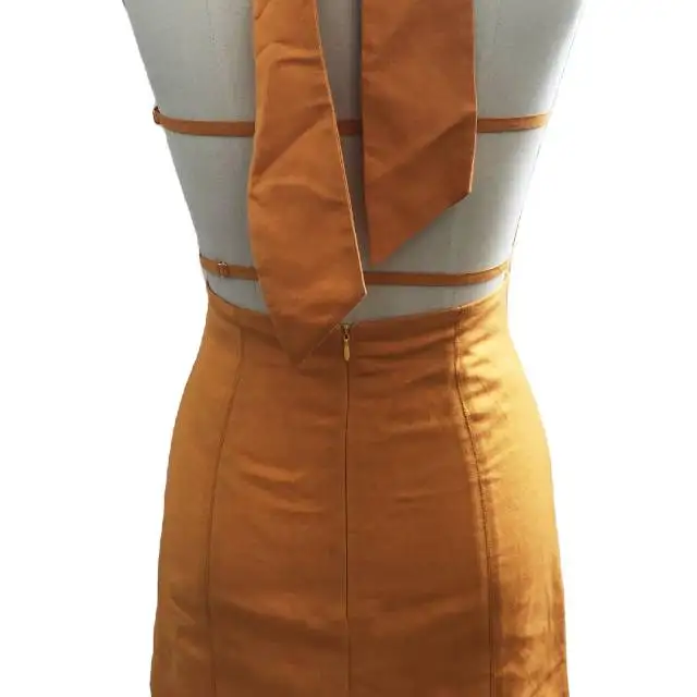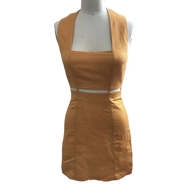 High Quality Custom Fashion Mini Dress Sleeveless Ladies 100% Linen.