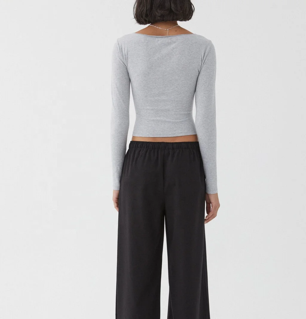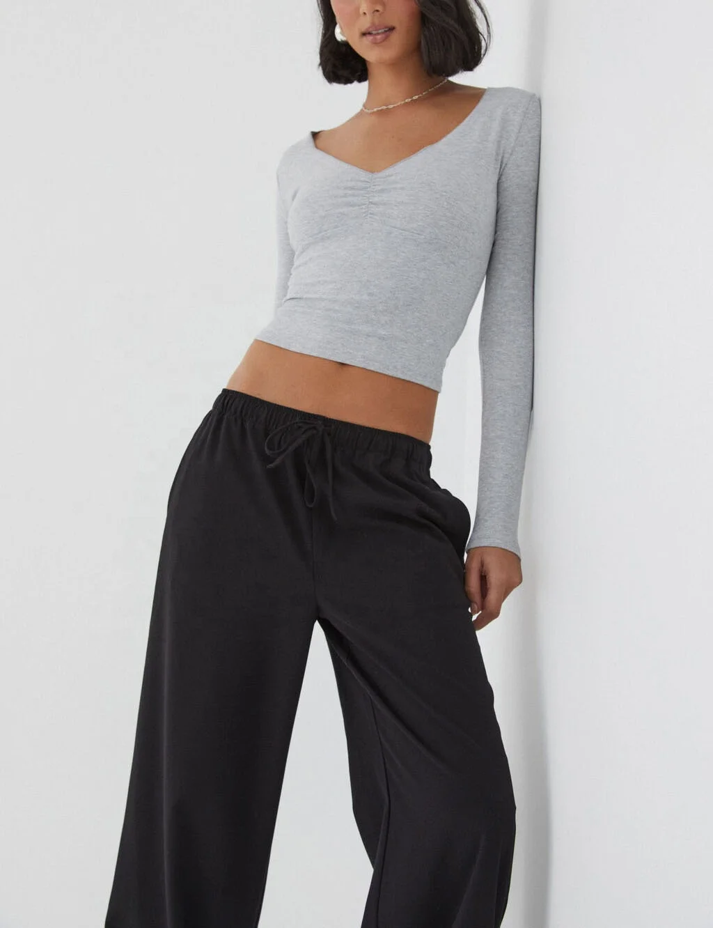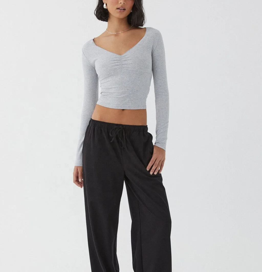 High Quality Custom V-neck Cotton Blank Ruched Crop T-shirt Top for Woman
