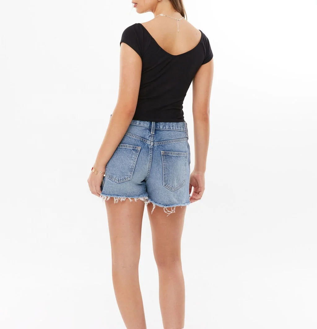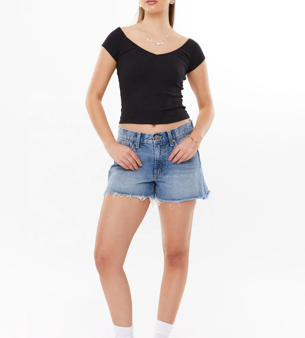 High Quality Custom Off Shoulder V-neck Cotton Crop T-shirt Top for Woman