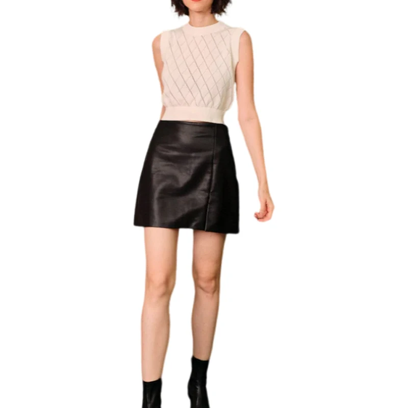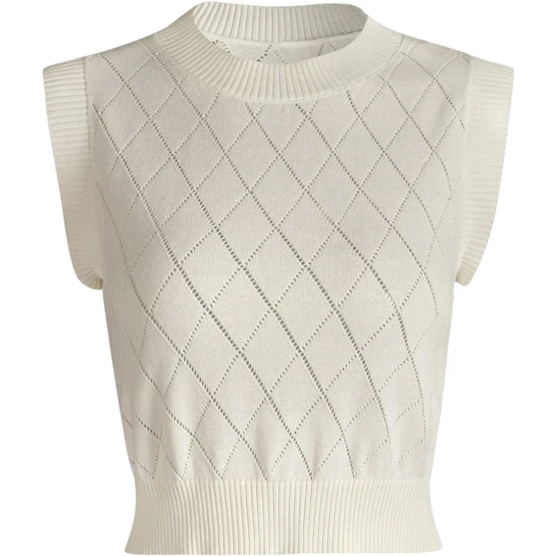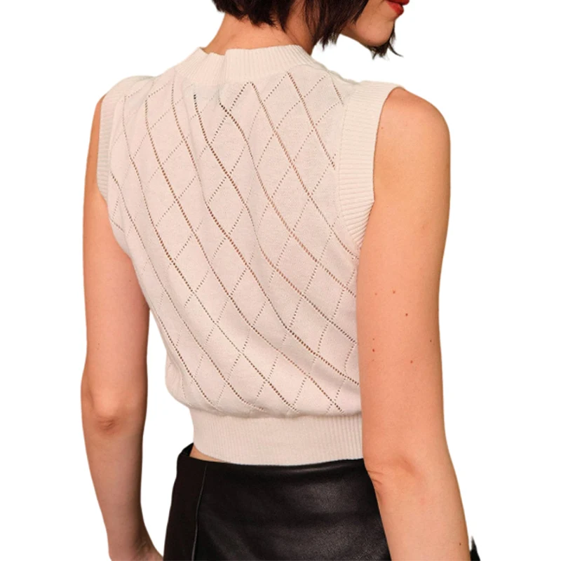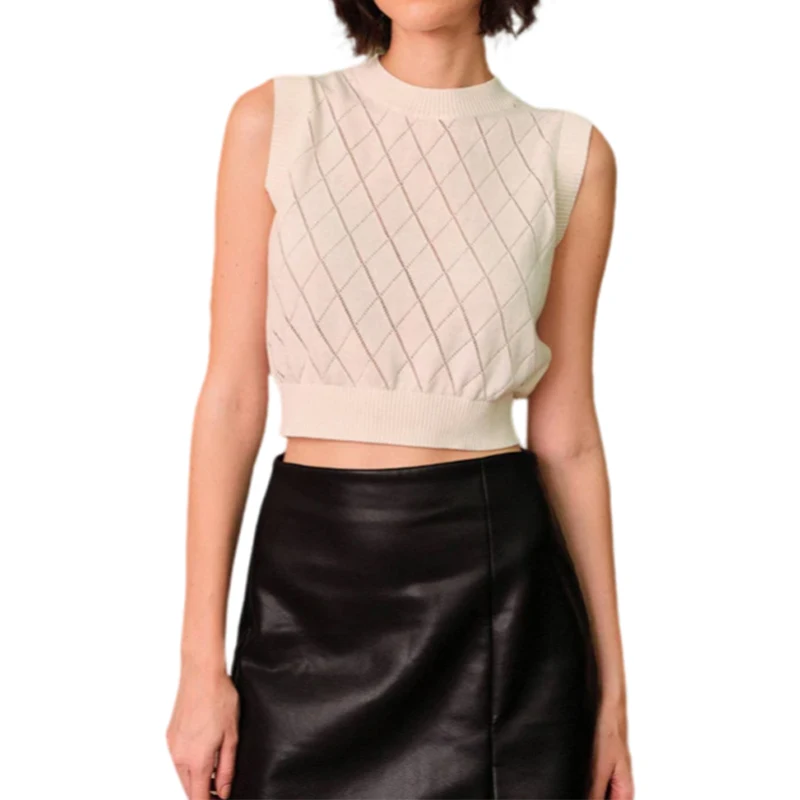 High Quality Custom Crew Neck Plaid Jacquard T-shirt Tank Top Knit for Woman