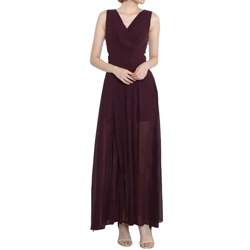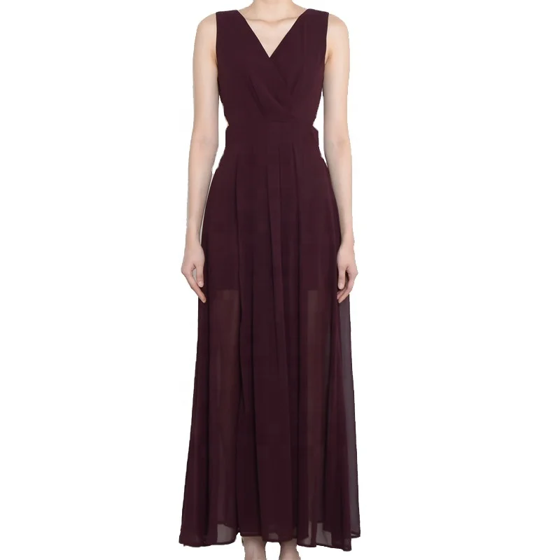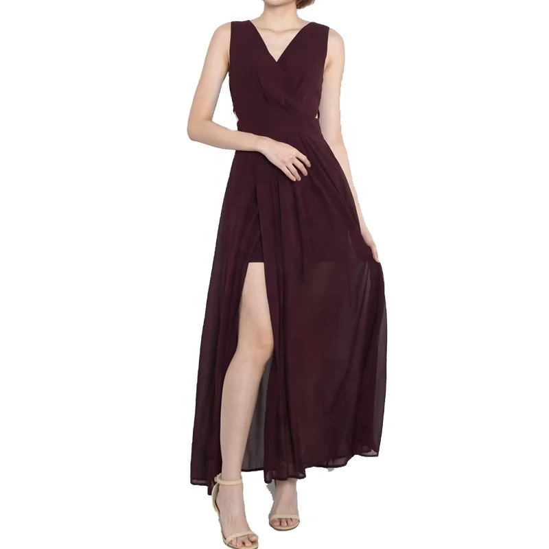 High Quality Custom V-neck Chiffon Gathers Split Dress for Woman