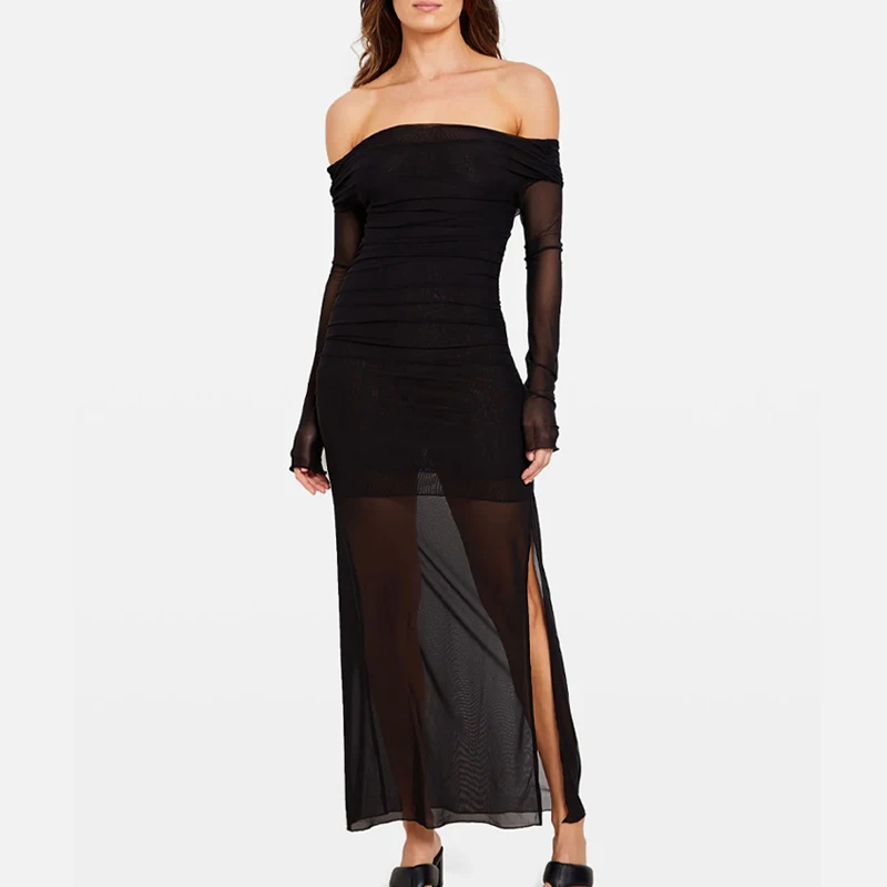 High Quality Custom High Split Off Shoulder Beach Maxi Dress for Woman
