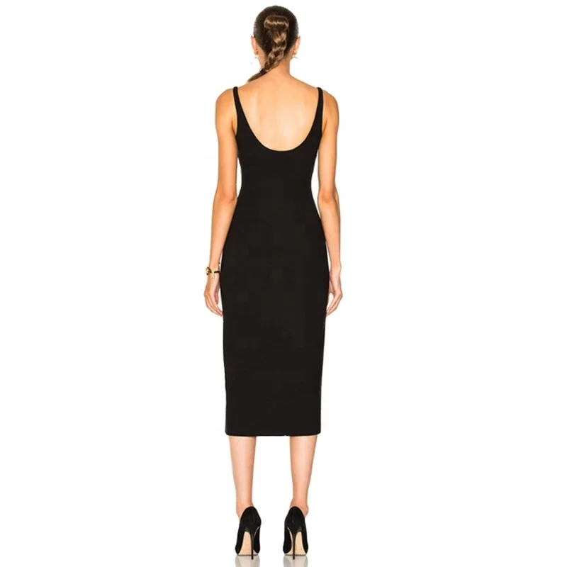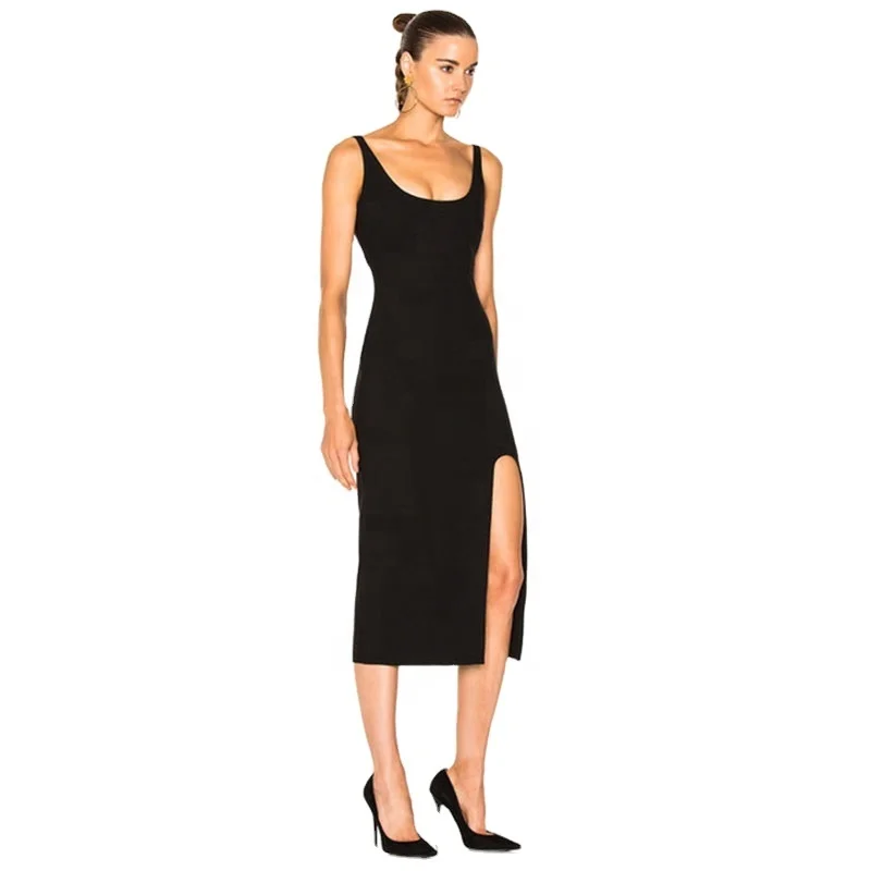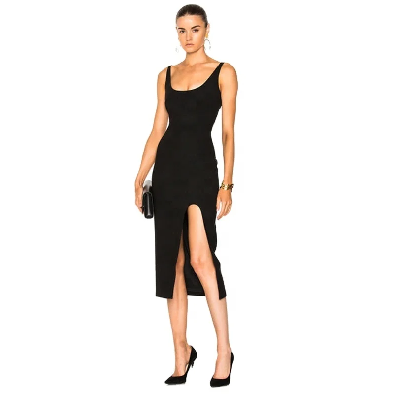 High Quality Custom Women's Sexy Bodycon Tank Sleeveless Dress Split Solid Basic Midi Club Dresses
