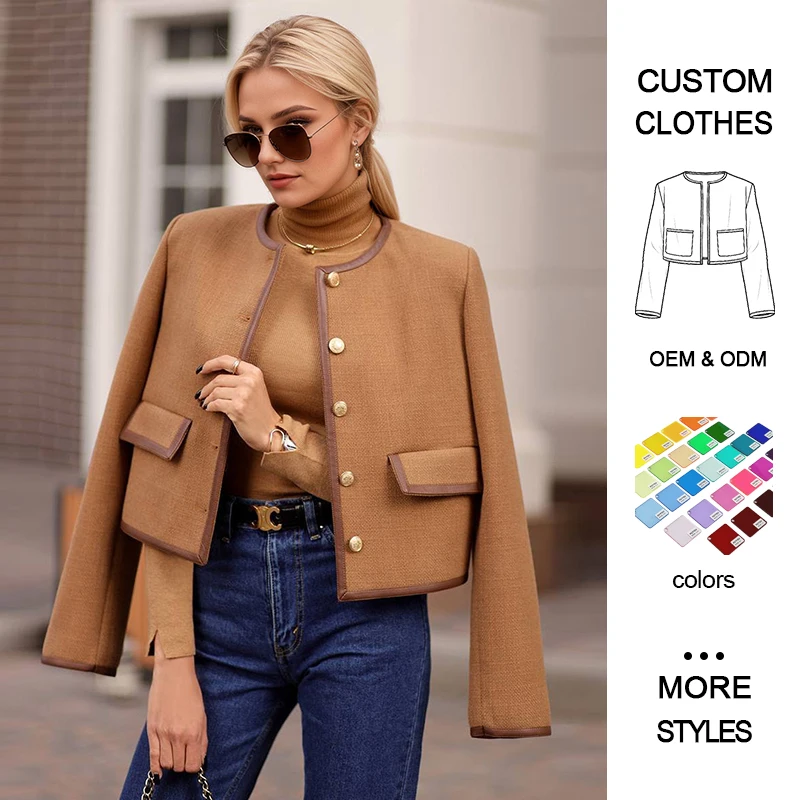 European American Cross-Border Women's Casual Short Coat for Autumn Winter Single Breasted Button Design Size XL Polyester