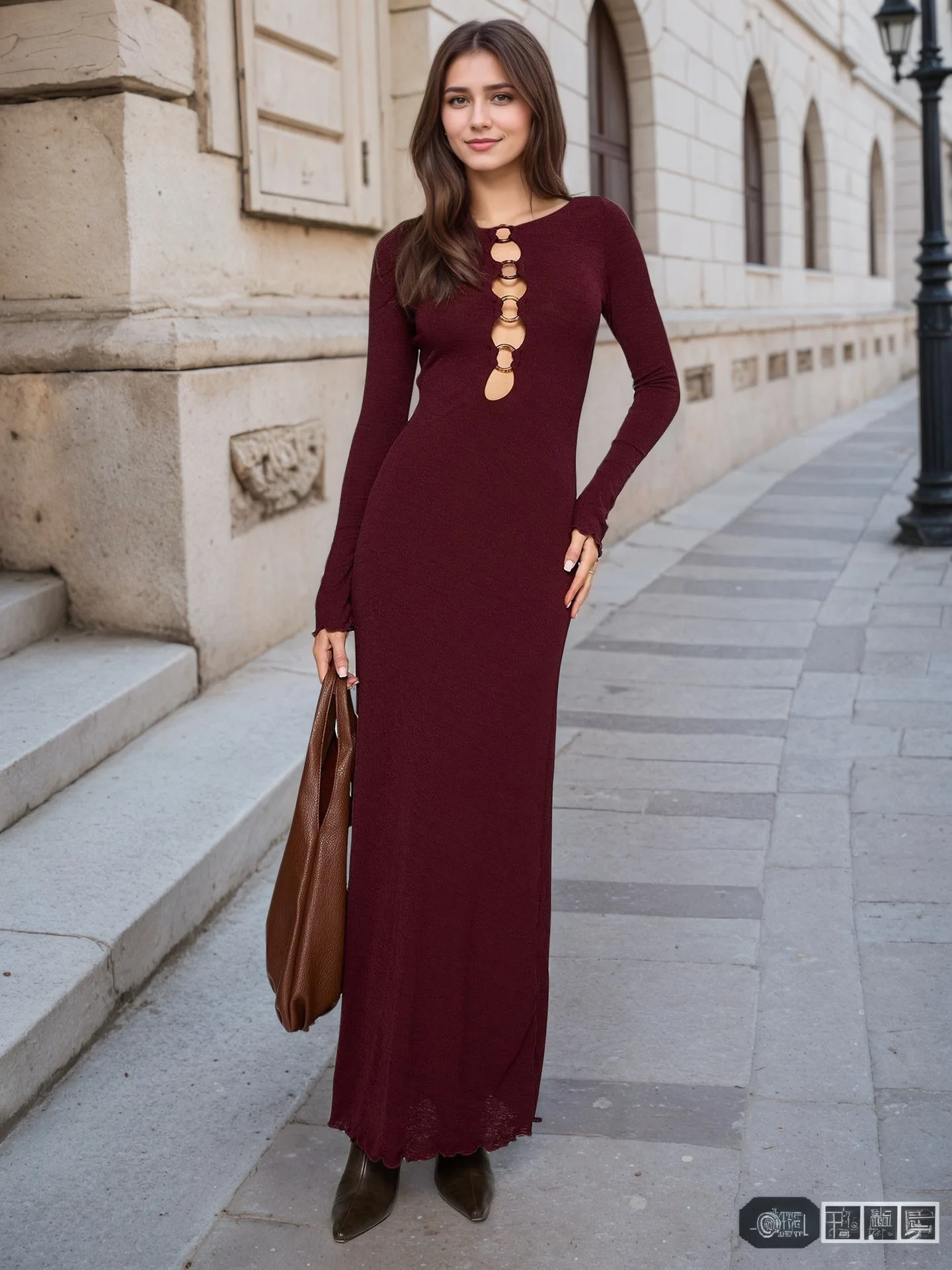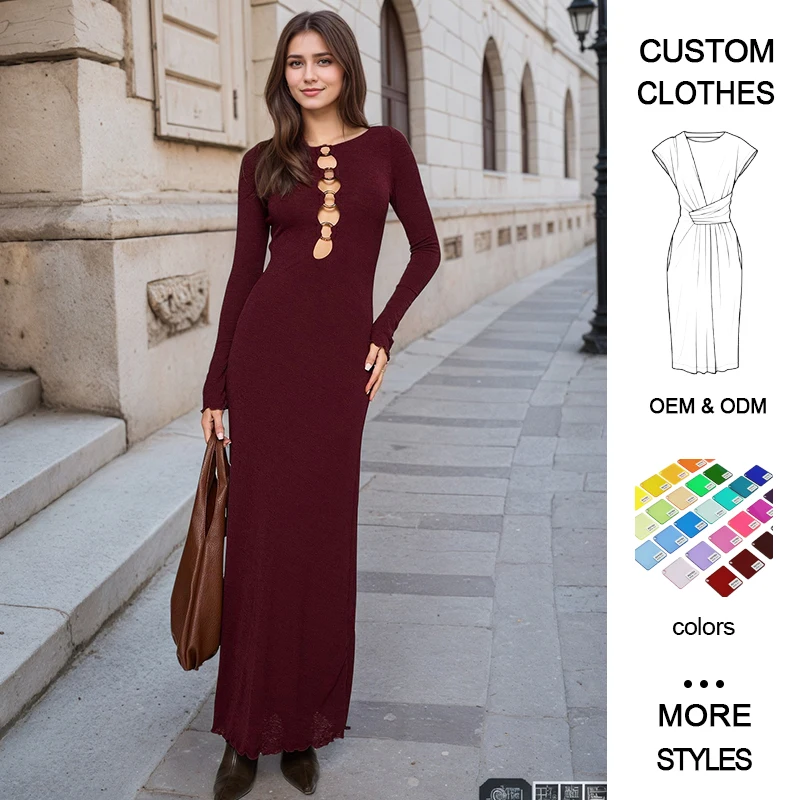 Customized Burgundy Slim-Fit Dresses Crocheted Maxi-Length Casual Style Natural Front Solid for Spring Summer Autumn Winter
