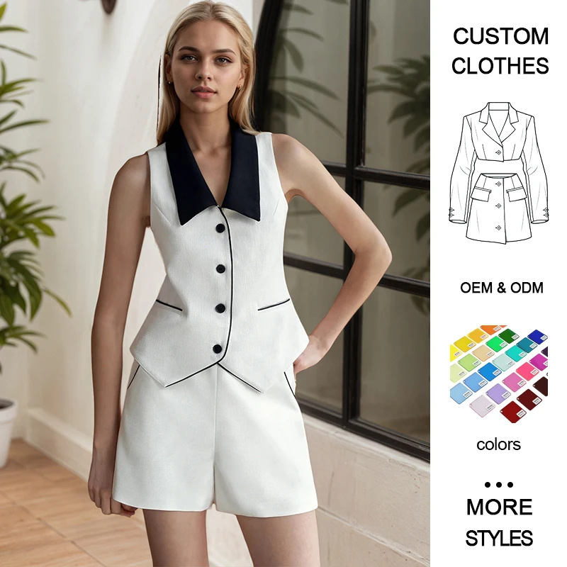 Women's Loose Dual-Purpose Summer Commuter Suit Cross-Border Two-Piece Set with Contrasting Buttons Vest & Shorts for Leisure