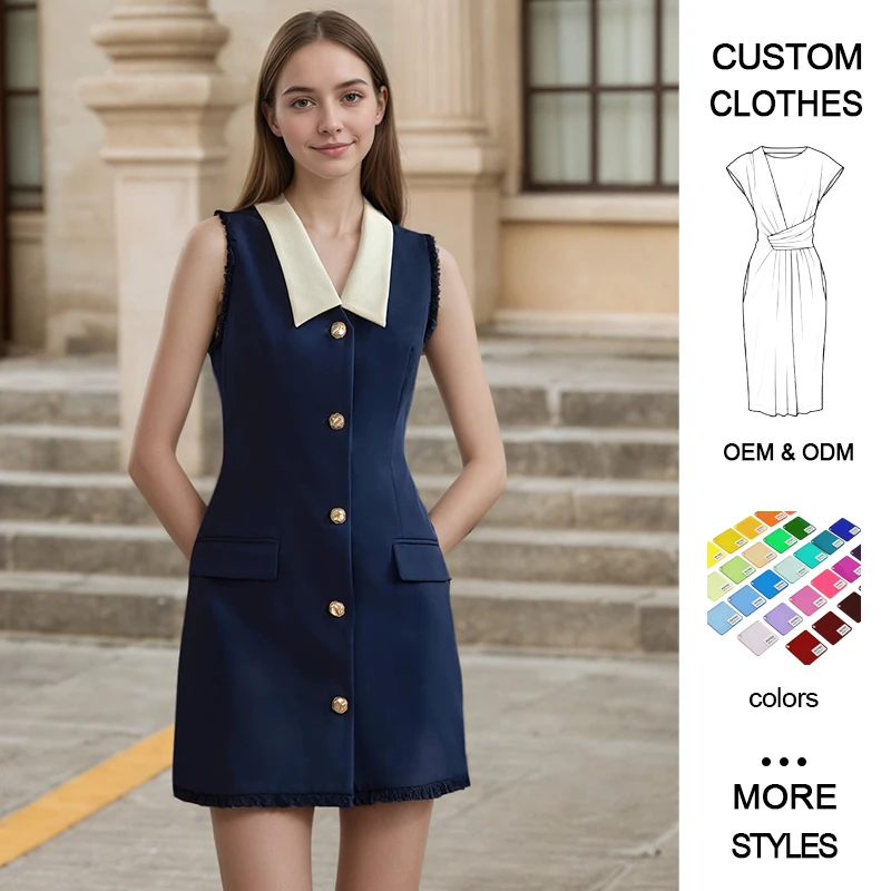 Direct Factory Custom Logo A-Line Metal Button Dress Modest Sexy Casual Style Breathable Washable Summer Knee Natural Nonwoven