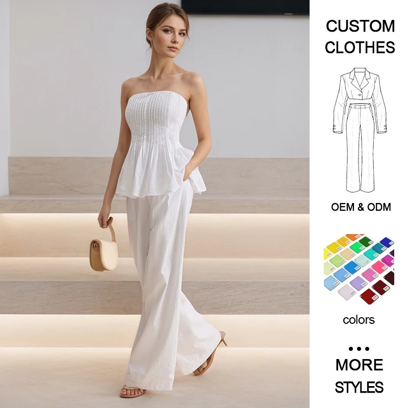 Women's White Off-the-Shoulder Top Trousers Set New Spring Summer Fashion Solid Short Plain Dyed Sweet Daily Wear Collarless