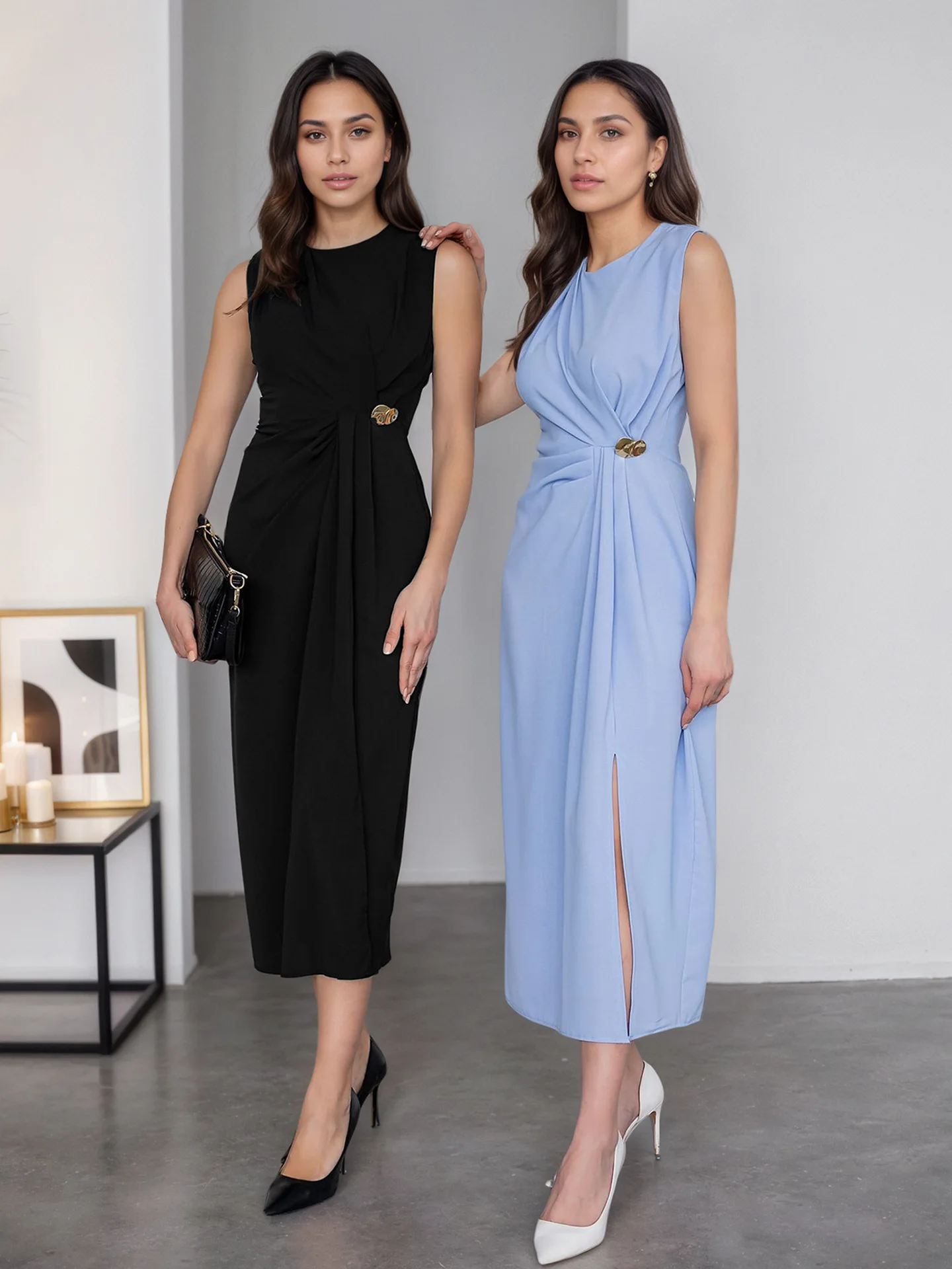 Summer New Women's Modest Elegant Office Fashion Slim Versatile Pleated Neck Sleeveless Dress Cross-Border Source Casual Style