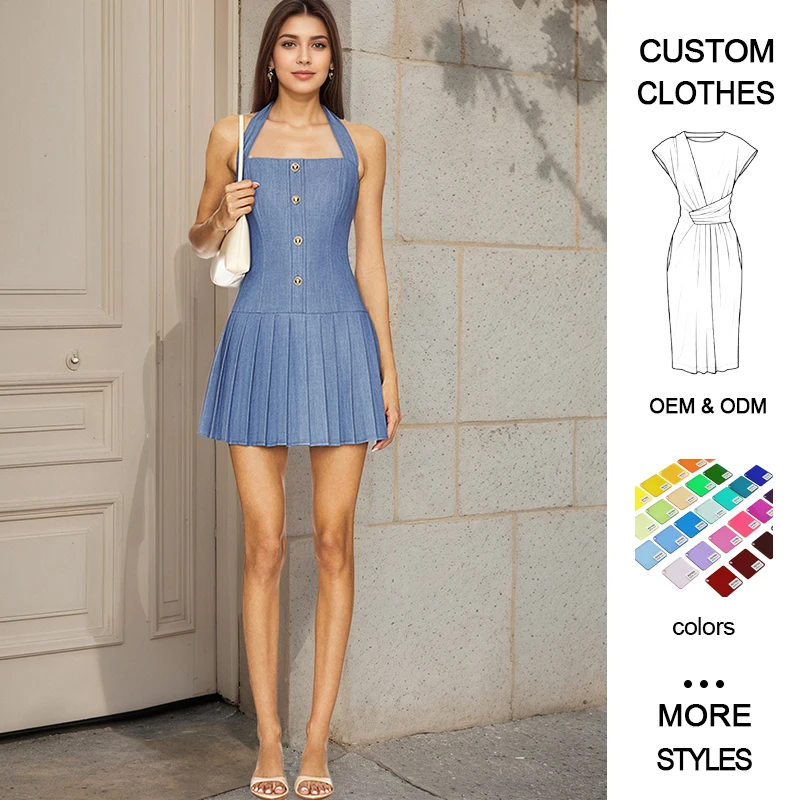 Sleeveless Halter Solid Color Pleated Women's Sexy Backless Midi Dress High Waist Slim Fit Breathable Spring Summer