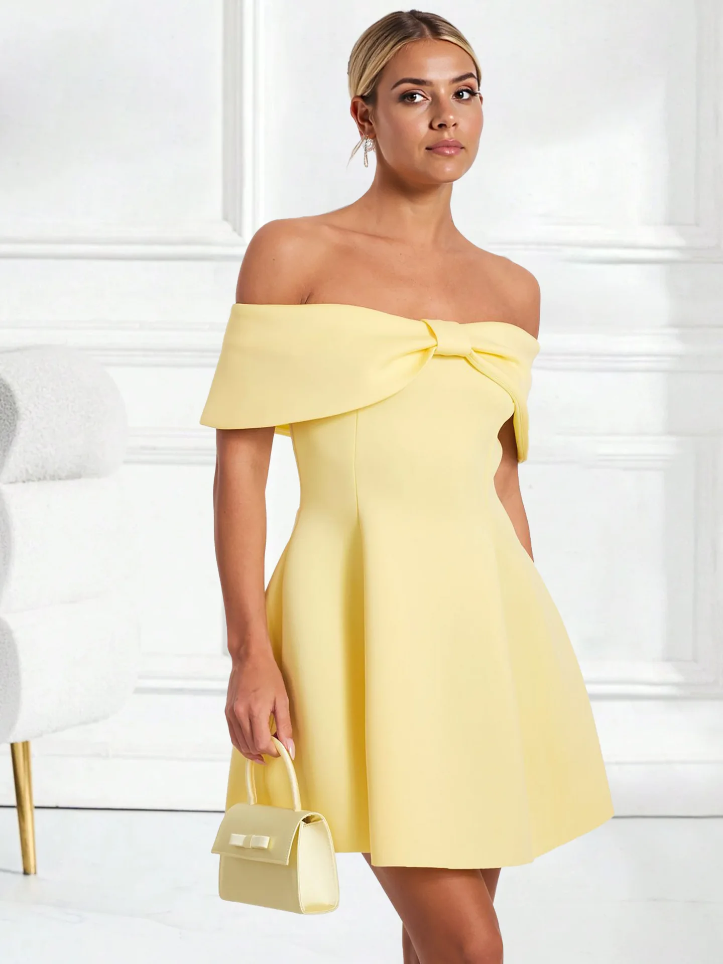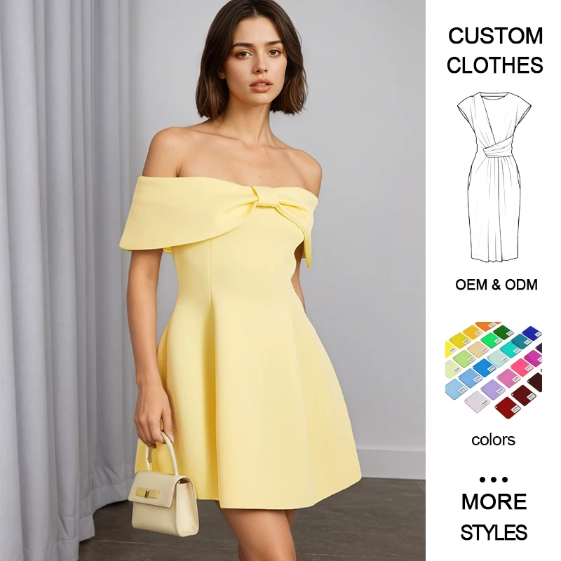 Custom Factory Manufacturer Women's Sexy Sweet Solid Formal Off-shoulder Knitted Midi Dress Anti-Wrinkle Spring Summer Flared