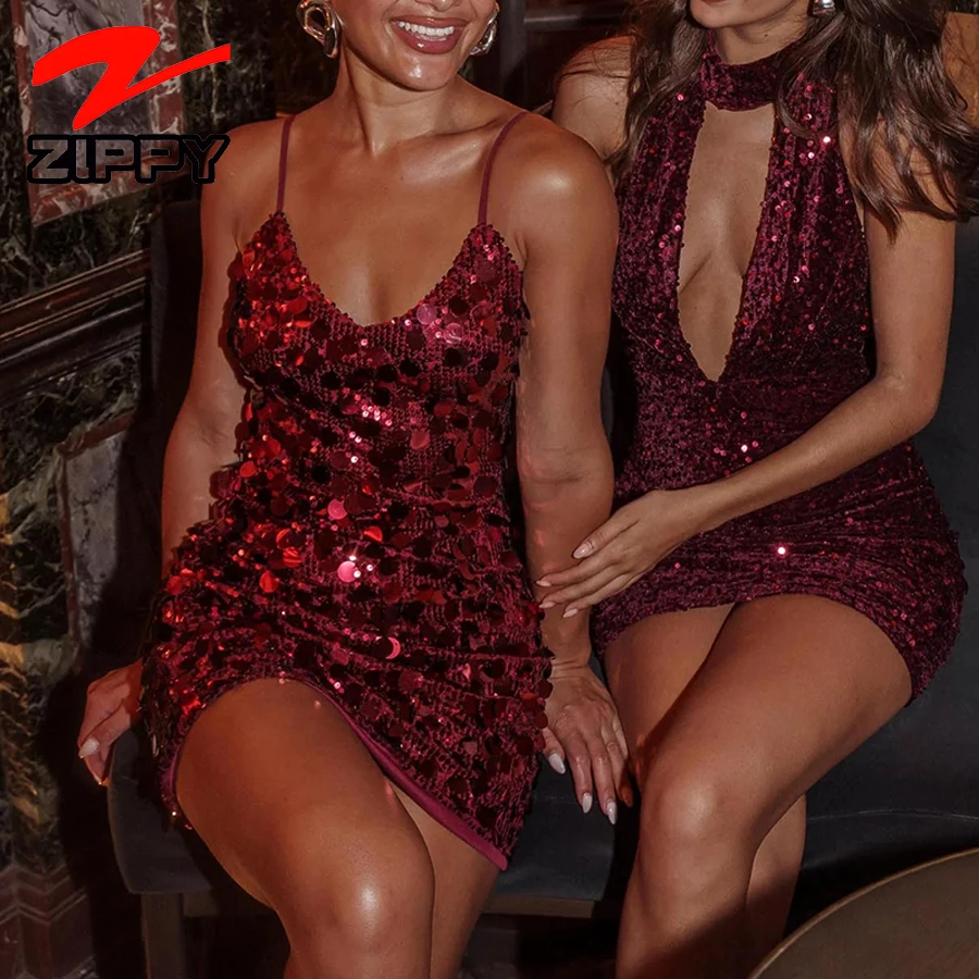 OEM Customize High-quality Sparkly Sequin Bodycon Slip Mini Dress Retro Sexy Elegant Club Party Evening Short Dress