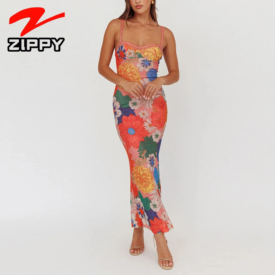 Customize Summer Beach Vacation Colorful Floral Print Bodycon Maxi Dress Fresh Elegant Temperament Party Evening Long Dress