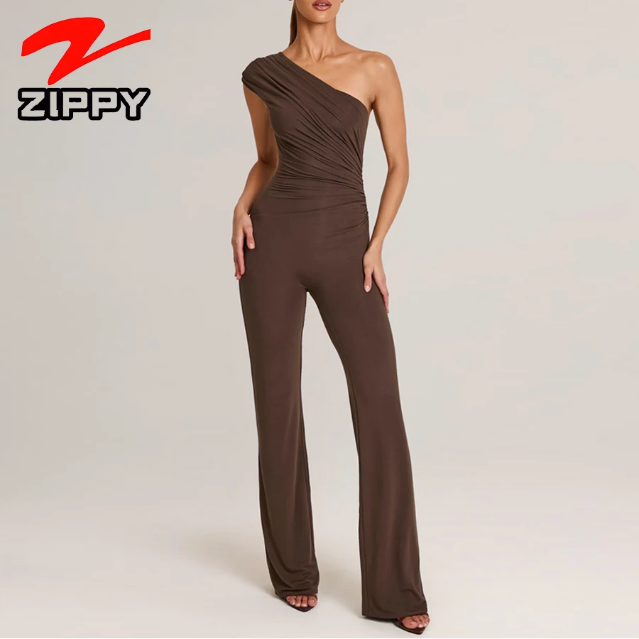 ZIPPY OEM Custom High Quality Fashion Simple Casual Solid Color One-Shoulder Jumpsuit Temperament Elegance Bodycon Jumpsuit
