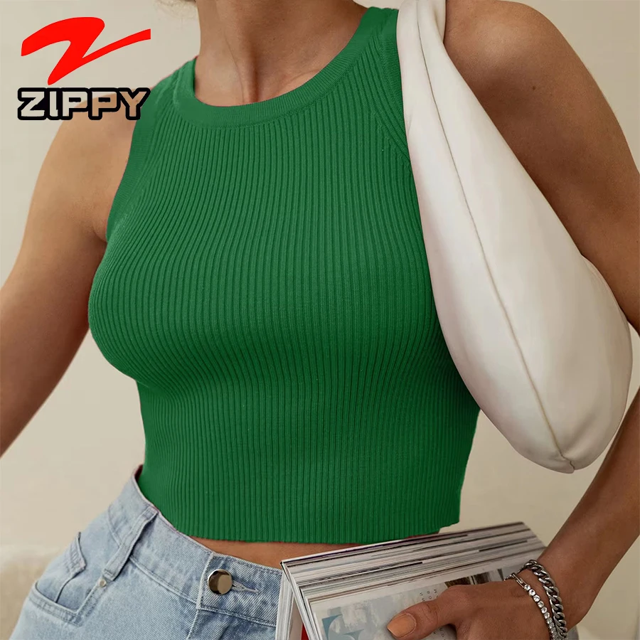 Women's Summer Crop Racerback Tank Top Slim Fit New Style Custom Logo Embroidery Casual Short Solid Color Knitted Vest Wholesale