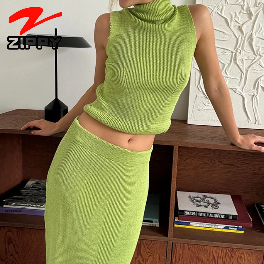 OEM Customize High Quality Women's Chic 2-Piece Set Stylish Turtleneck Vest & Long Skirt Summer Fashionable Outfit for Winter