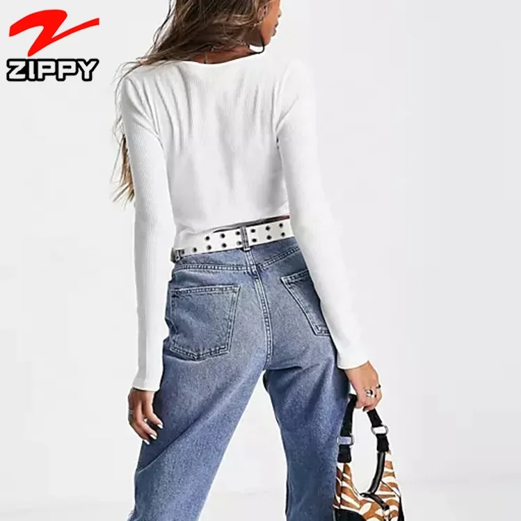 Wholesale Bulk Custom Logo Private Label Mujer Basic White Plain Blank Long Sleeve Womens Crop Top
