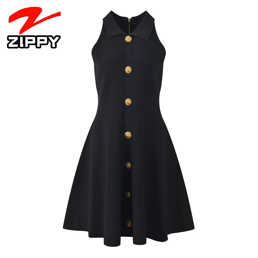 Women's Elegant Casual A-Line Dress POLO Collar Button Zipper Knitting Fabric Summer Winter for Spring Autumn Front