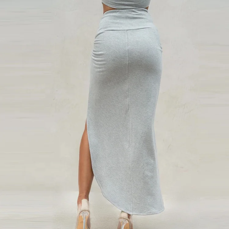 ZIPPY Custom Simple Casual Knot Detail High - Slit Maxi Skirt Asymmetric Design Bodycon Fit Elegant Long Skirts