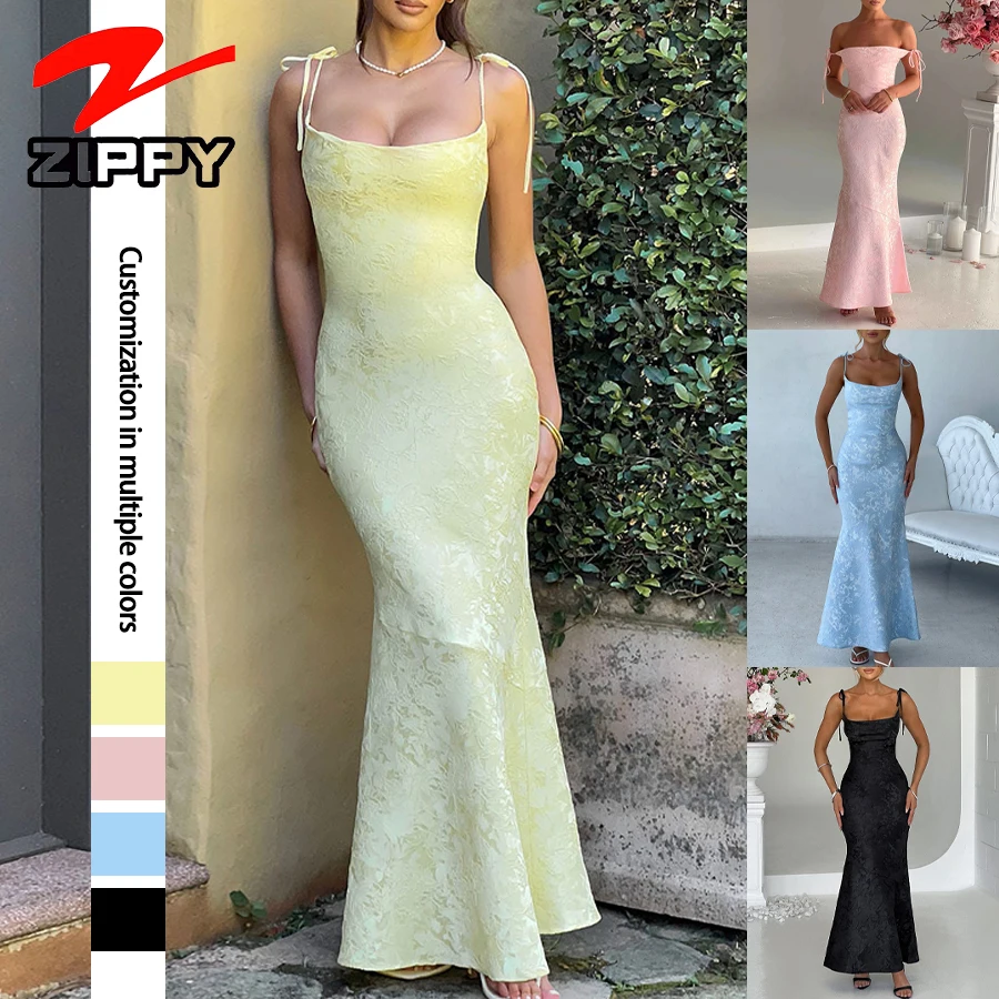 Custom High Quality Fashion Jacquard Maxi Dress Square Neck Back Lace-Up Design Mermaid Silhouette Sexy Party Evening Slip Dress