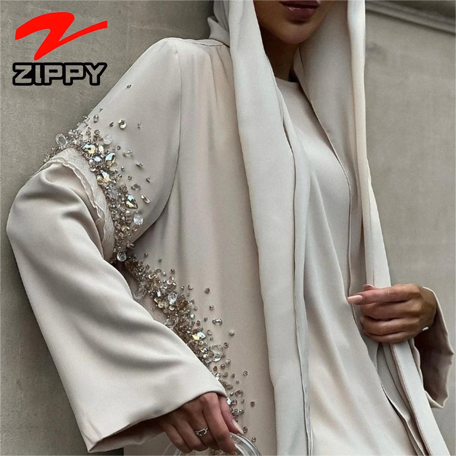 OEM Customize Elegant Muslim High End Abaya Crystal Embellished Dubai Eid Muslim Two Piece Set Abaya Spitze Saoudienne Casual
