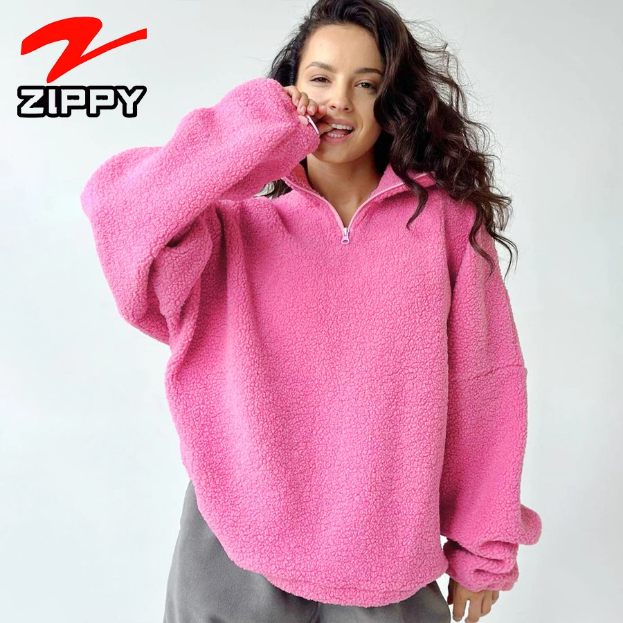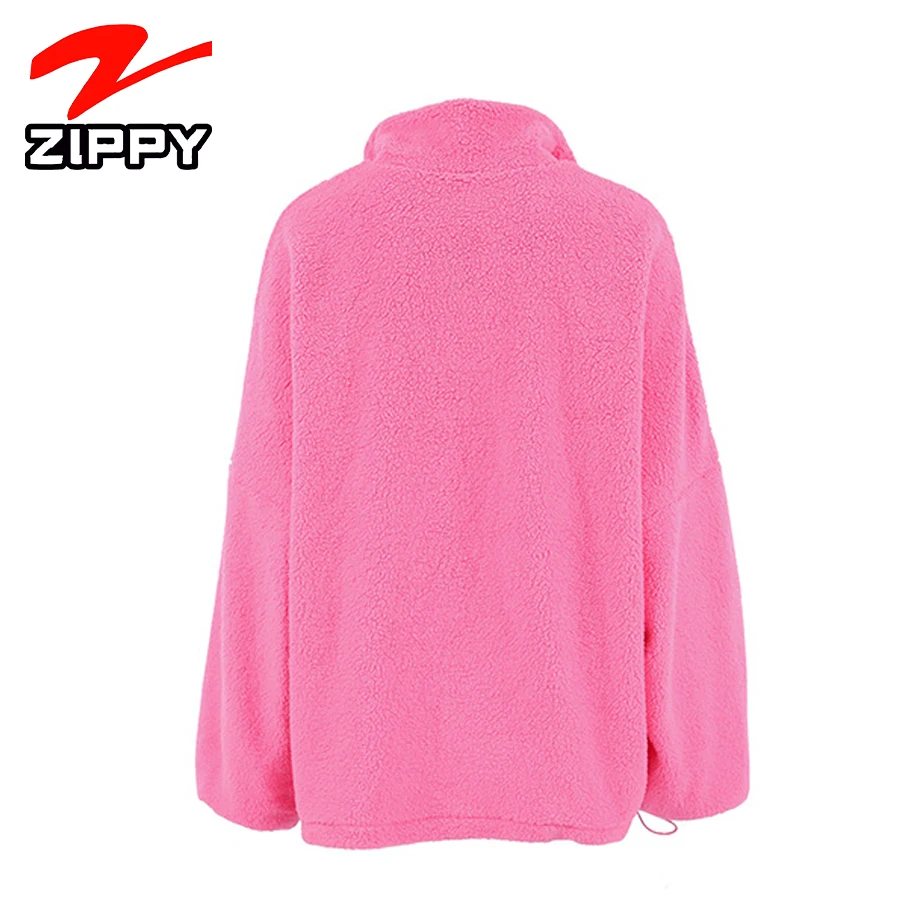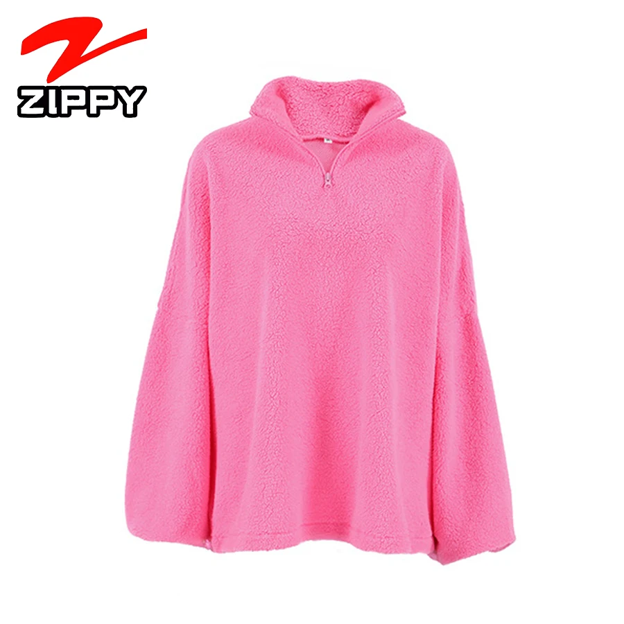 Customize Women Fashion Simple Half-Zip Design Fleece Pullover Stand Collar Oversized Casual Warm Sweatshirt