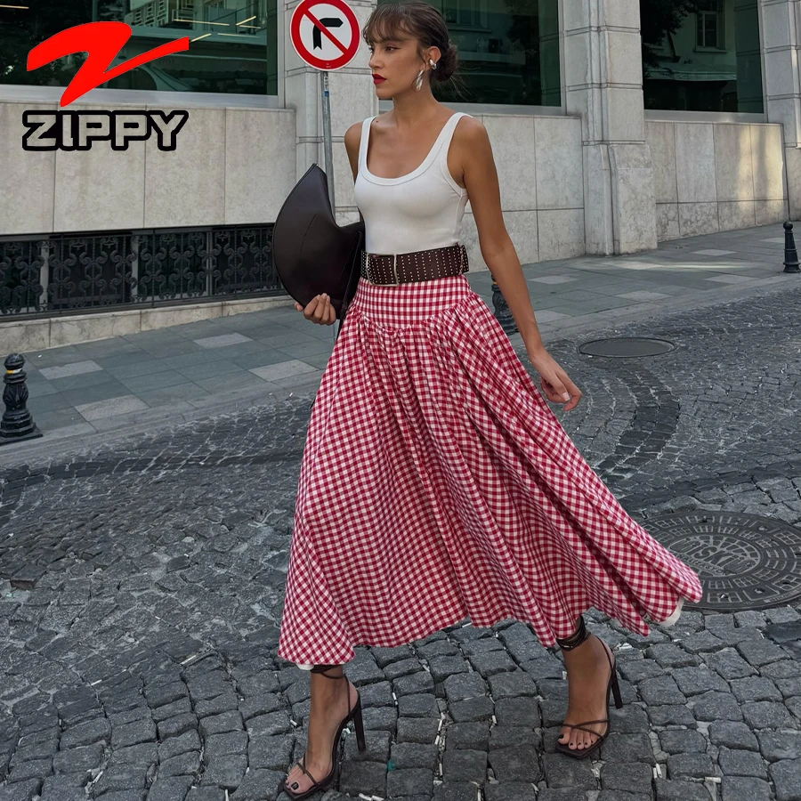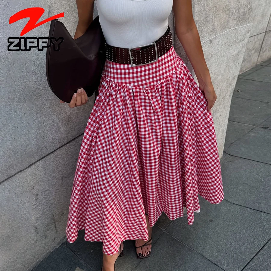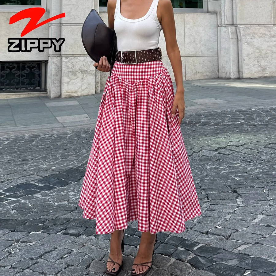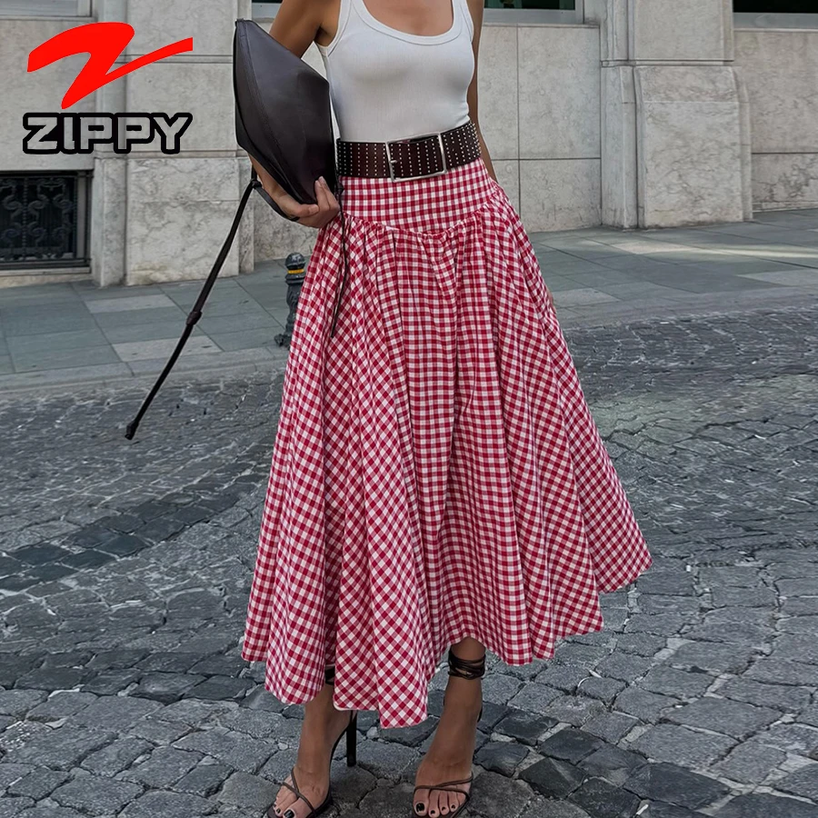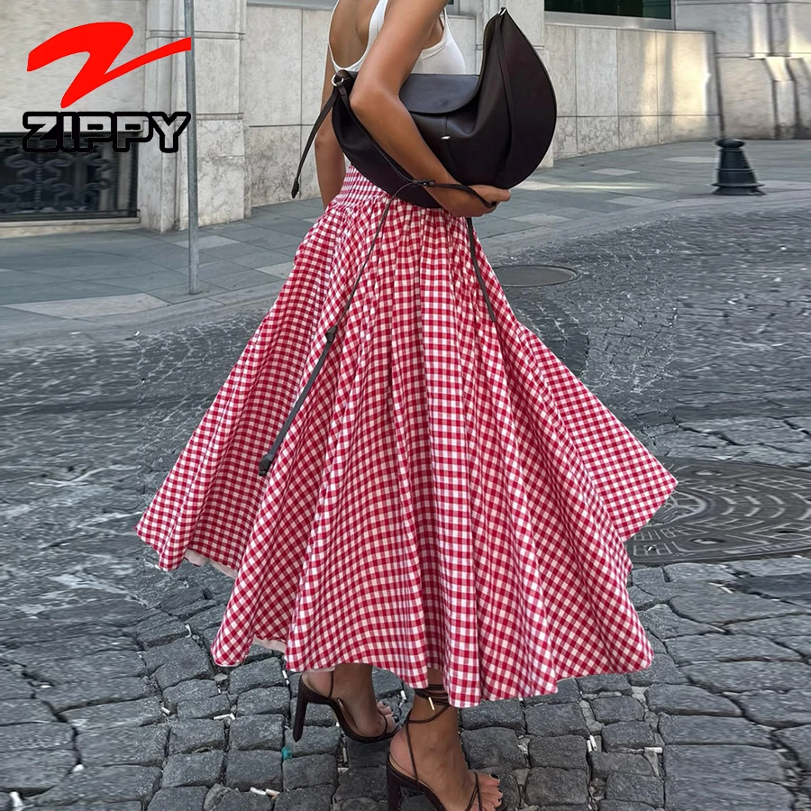 Customize Fashion Simple Plaid Maxi Skirt High-Waist A-Line Casual Expansion Skirt Temperament Elegant Long Skirt