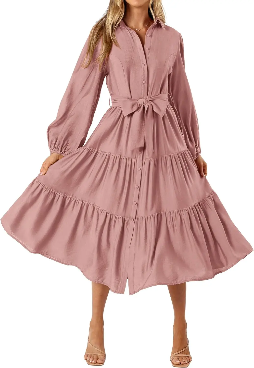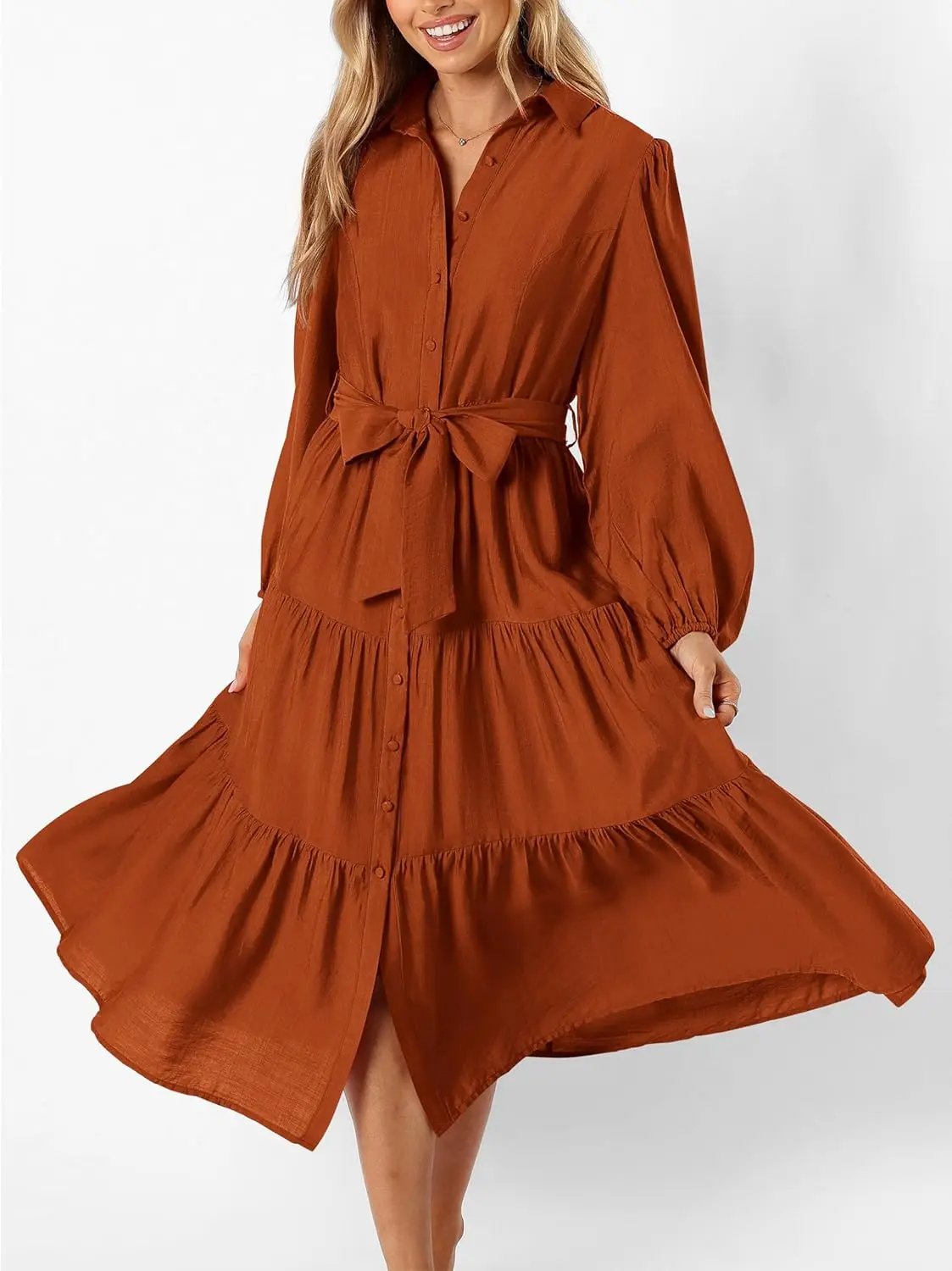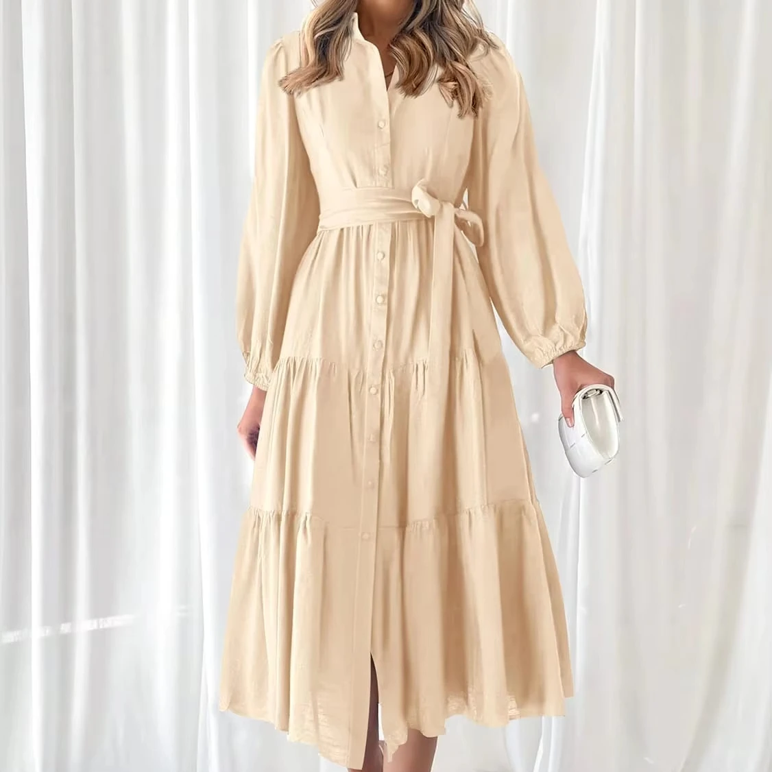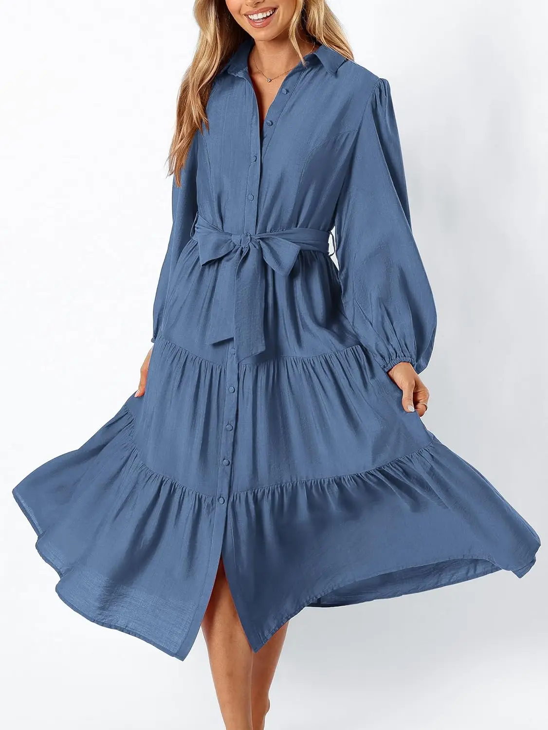 Women Simple Casual Elegant Dress Fashionable Loose Long Sleeves A-line Midi Shirt Dress