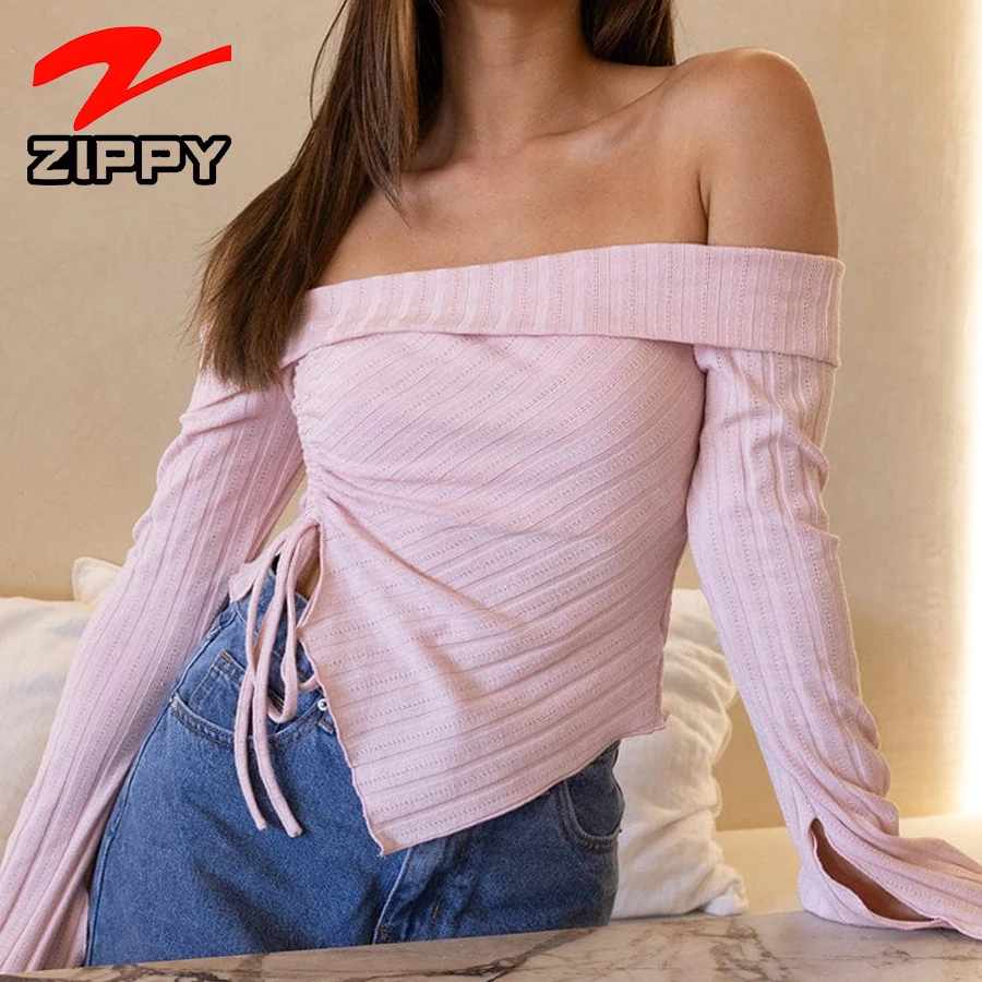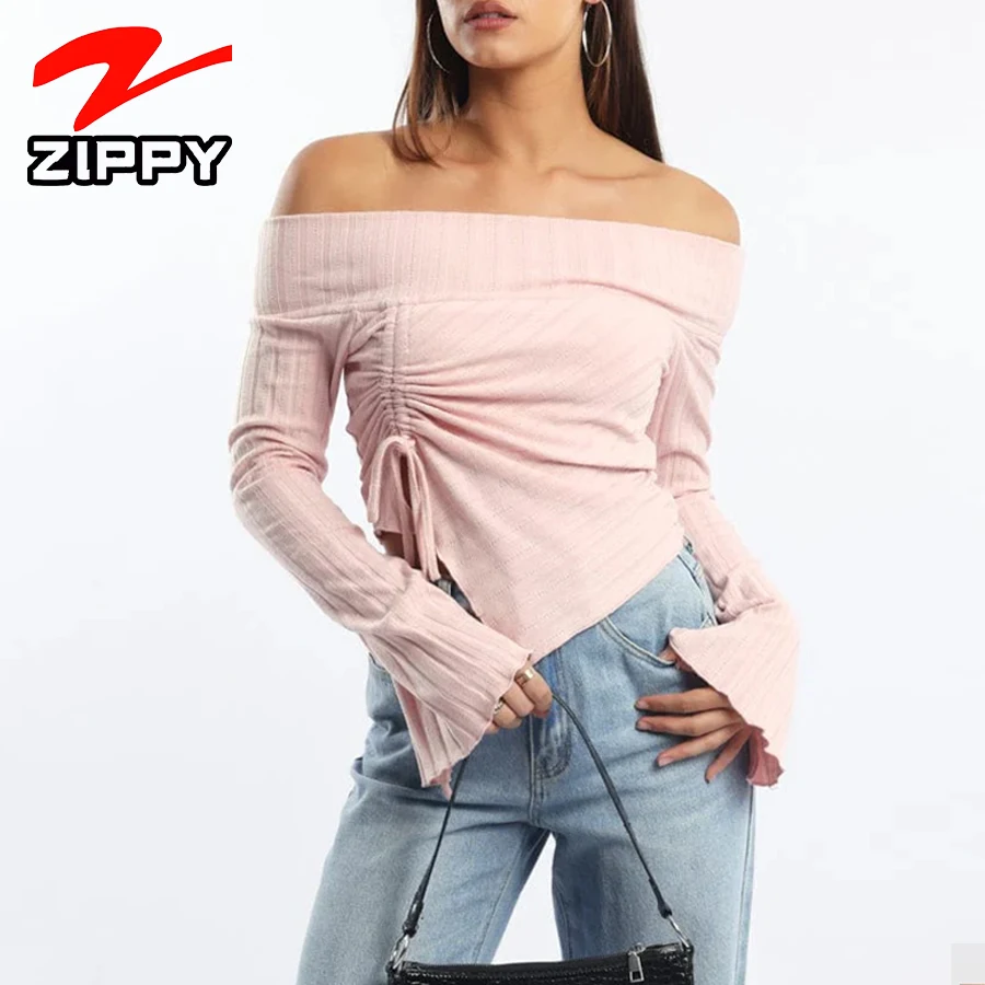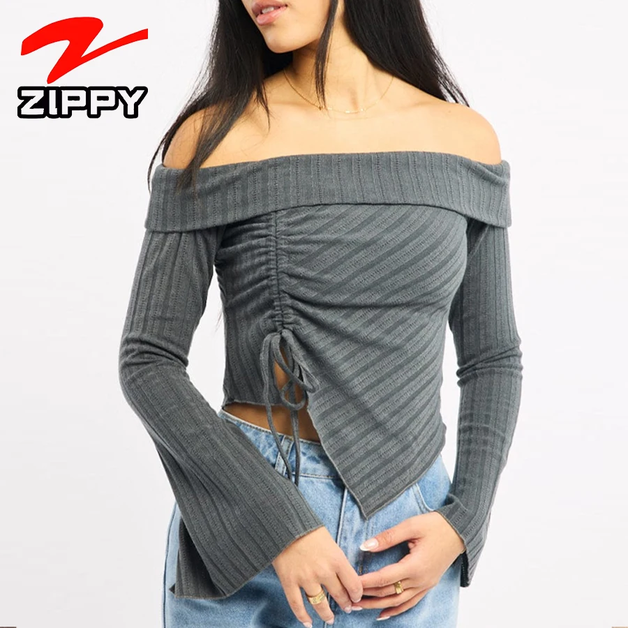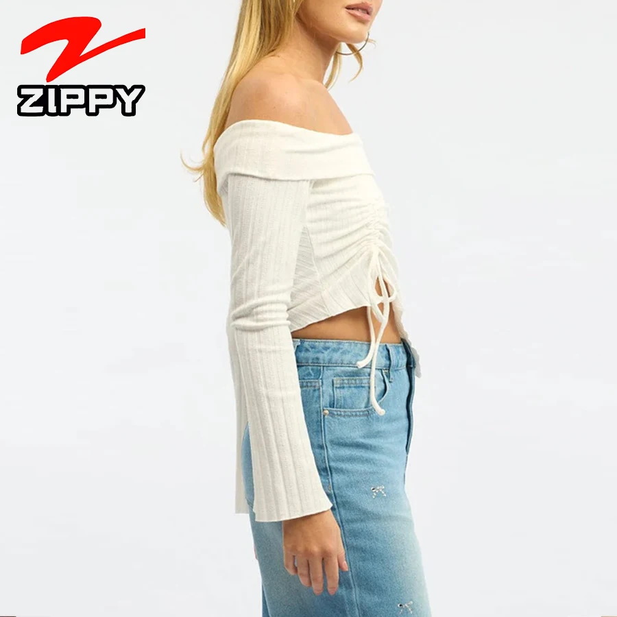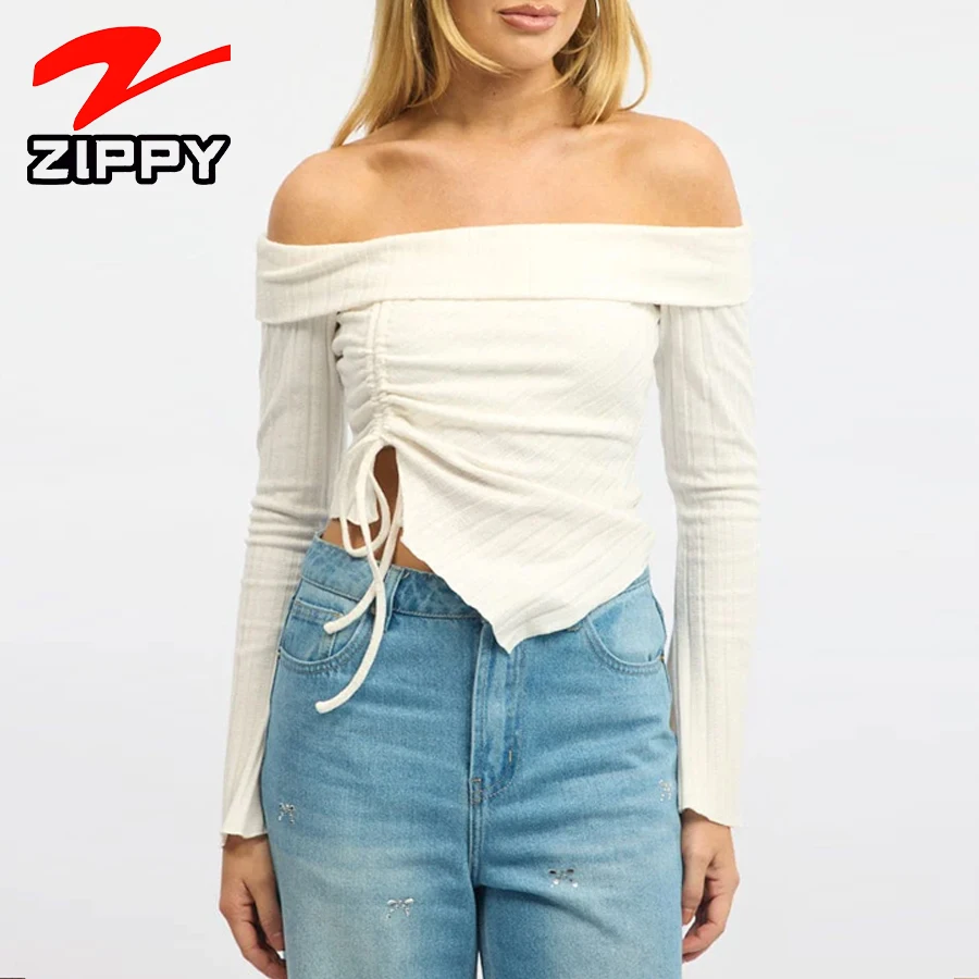 Customization Women's Fashionable Simple Off-the-shoulder Long-sleeved Top Elegant Temperament Irregular Hem Design Blouse