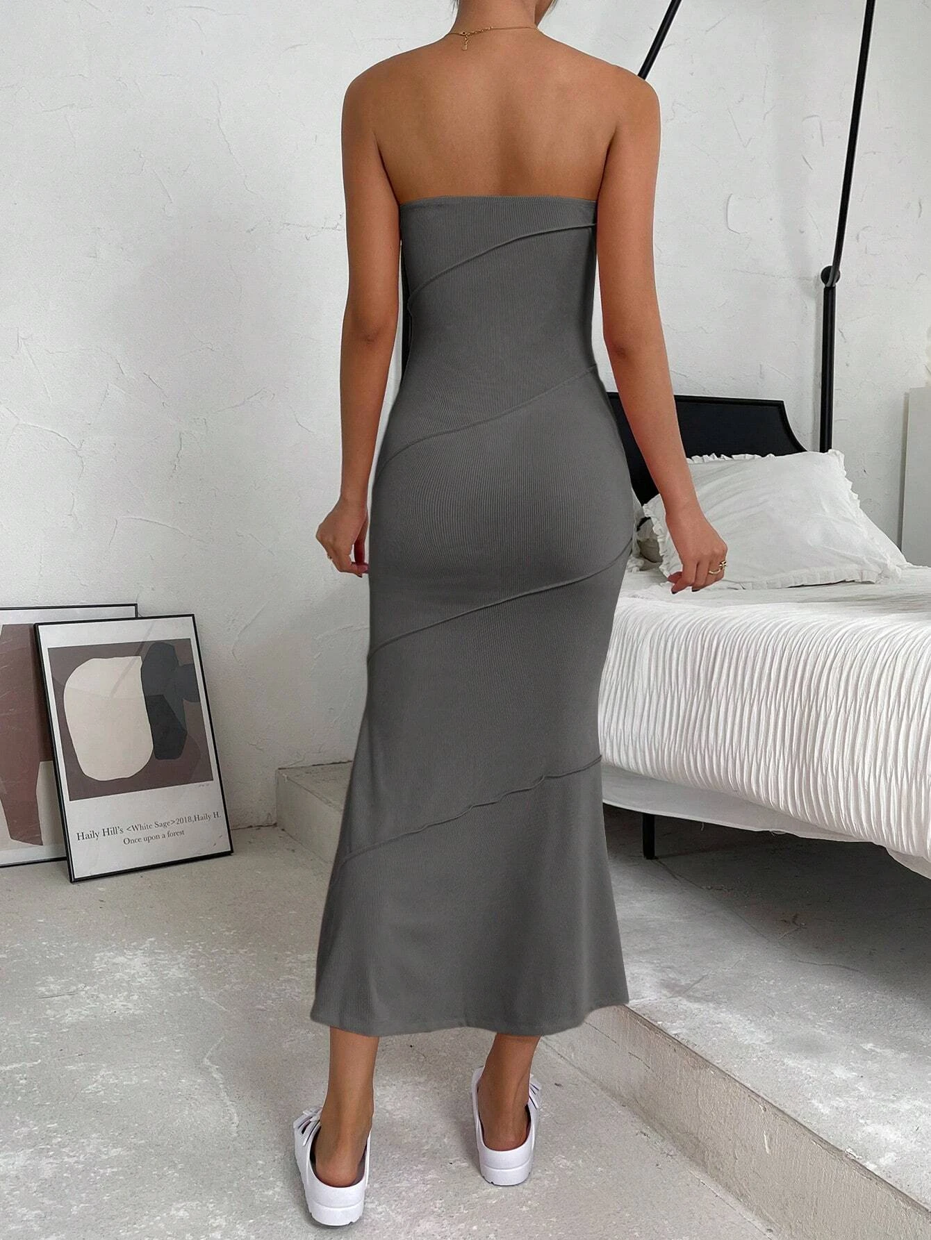 Slim Sexy Backless Slit Ruffled Dress Long Bodycon Tube Maxi Dresses Solid Mermaid Hem Tube Dress