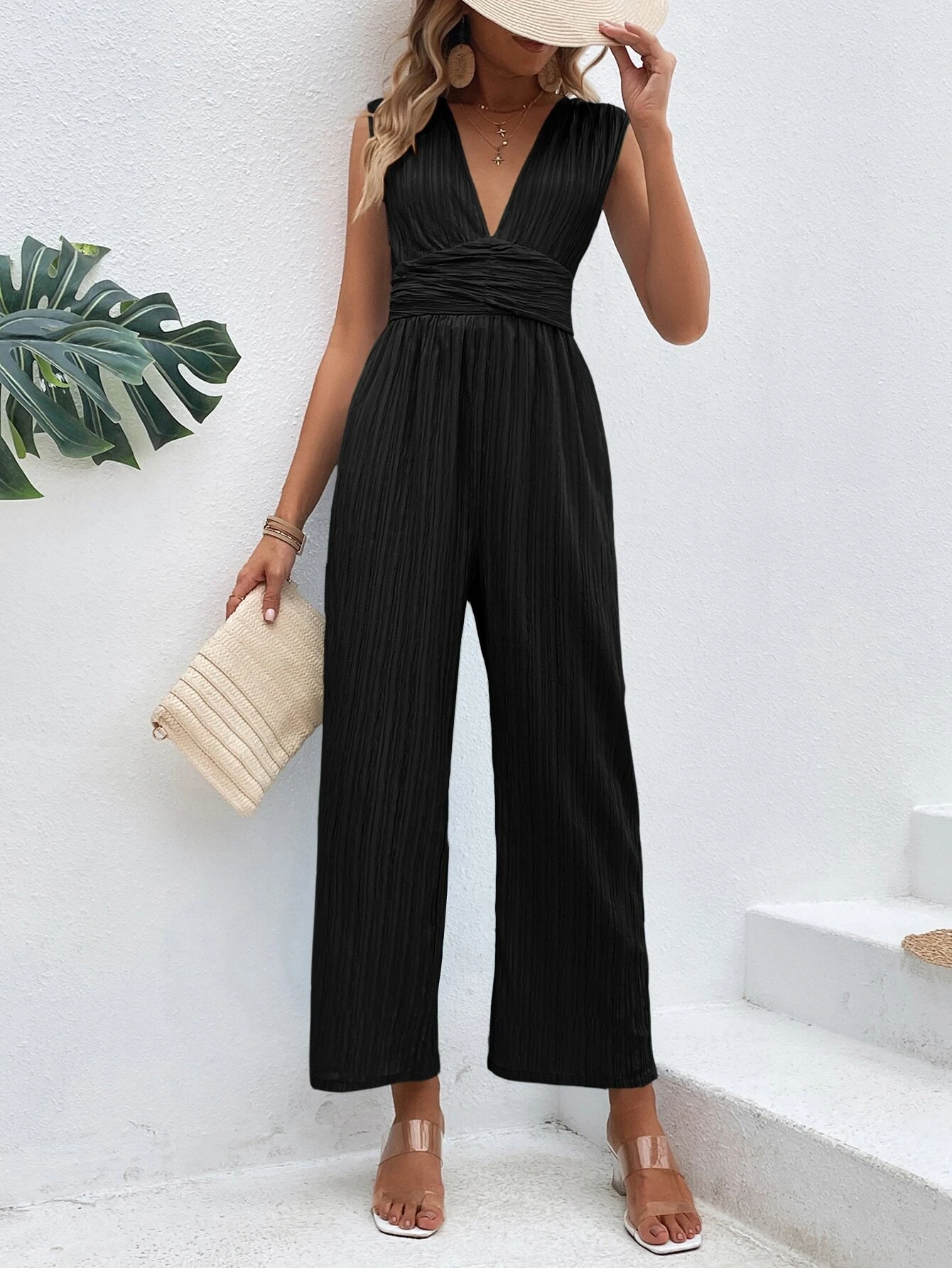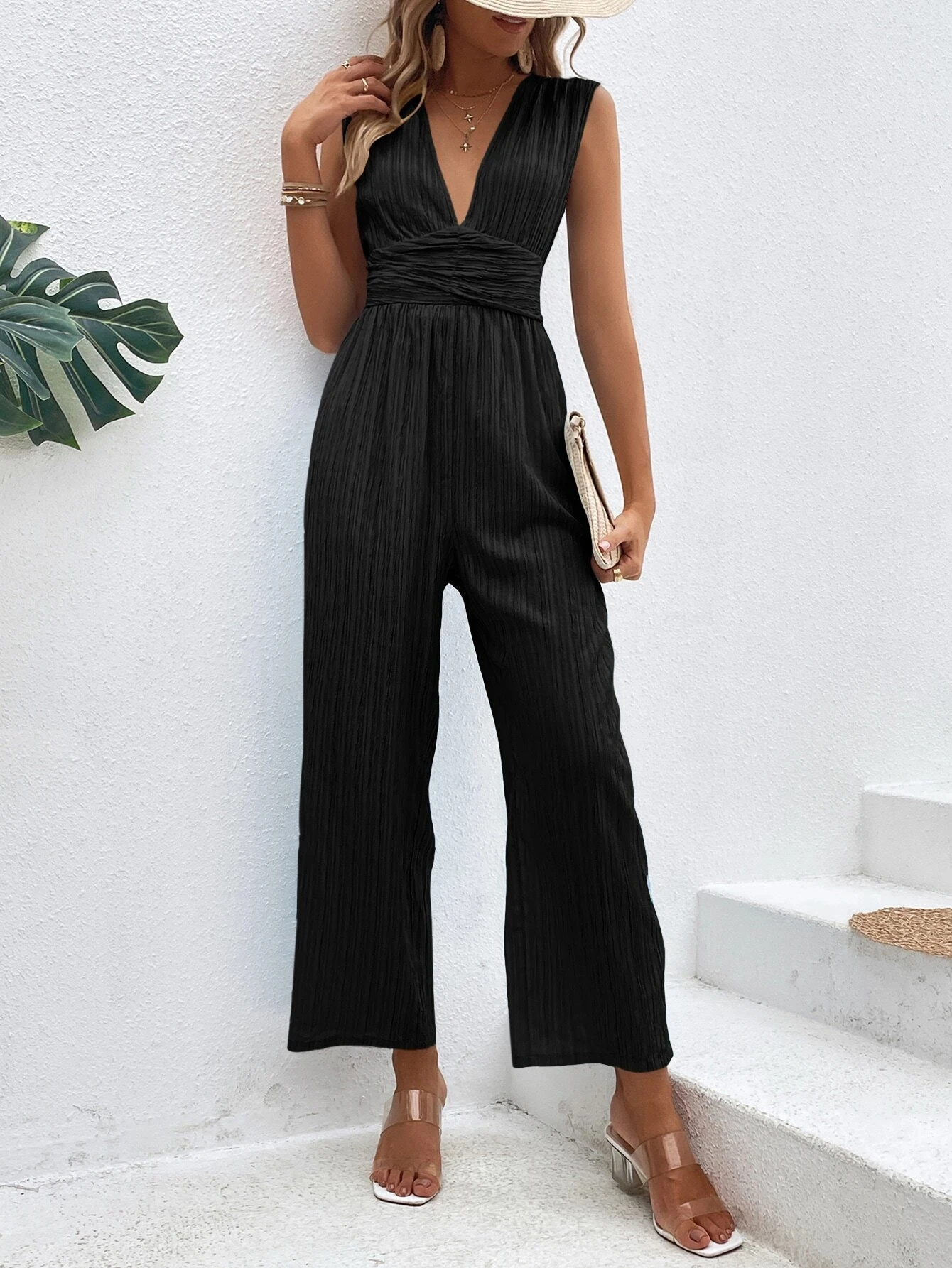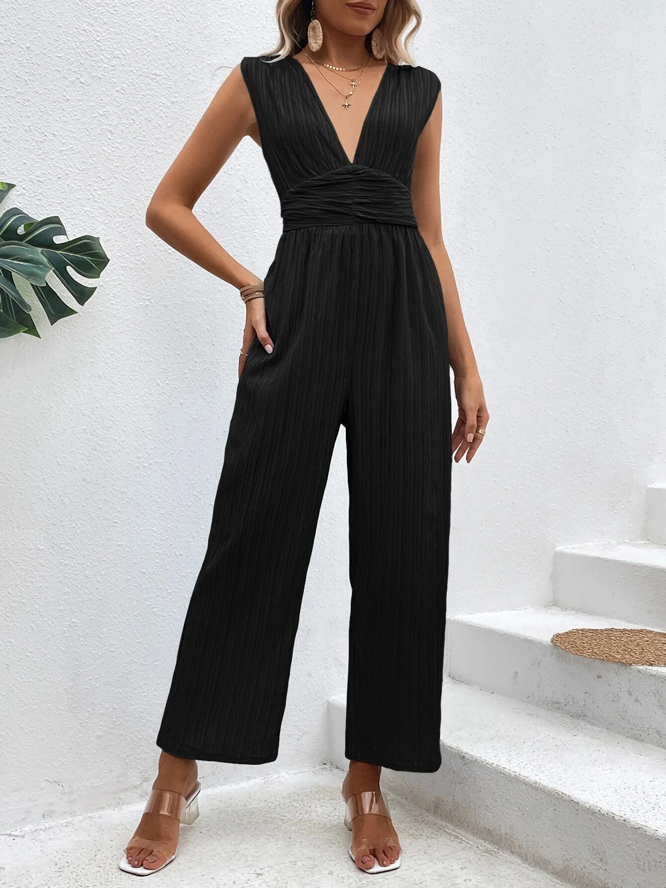 Custom Jumpsuit for Women Romper Playsuit Sleeveless Women Elegant Wide Leg Jumpsuit Plunging Neck Wide Leg Jumpsuit